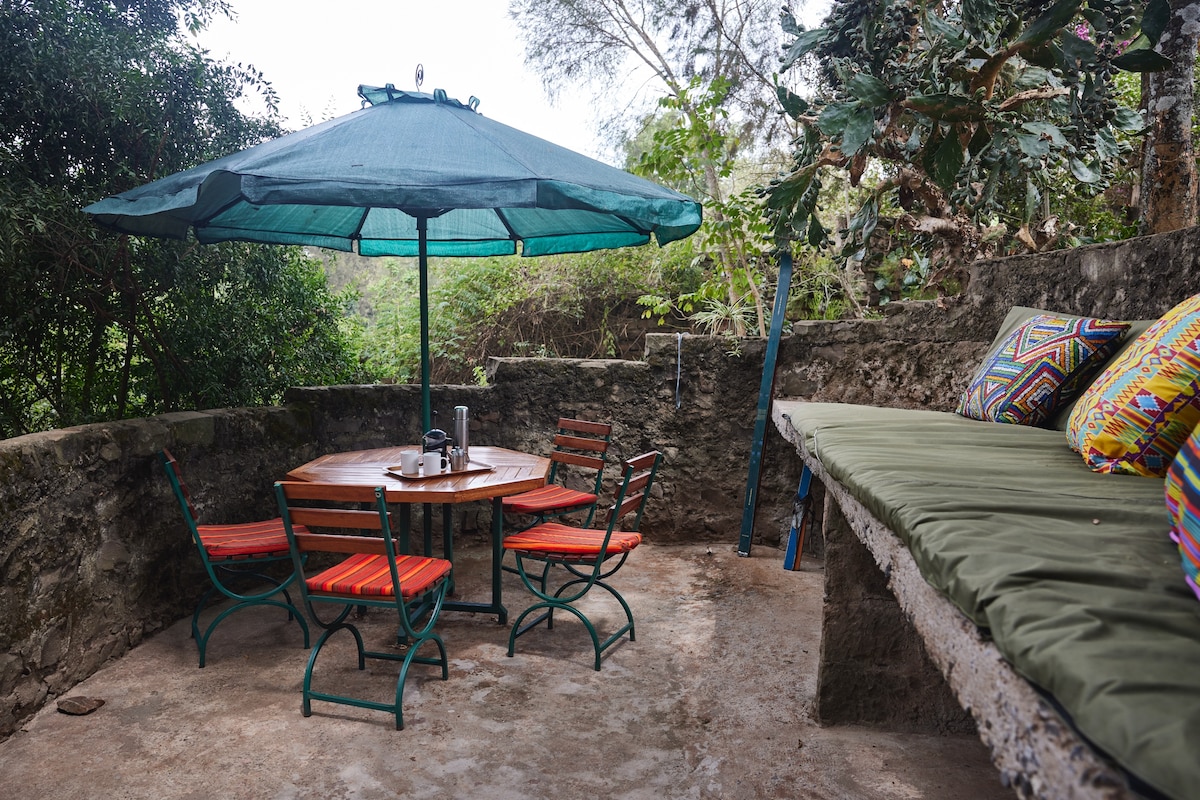 We are delighted to host both international and local guests to our villa. Our rooms are designed for comfort and tranquility, featuring cozy and self-contained spaces. Each room features a small kitchenette, and guests have access to a larger kitchen within the building. All rooms offer stunning views of a natural cascade (waterfall) and the lush Karura Forest. Conveniently located near most embassies and the UN offices. We also offer tailor made excursions or safaris.