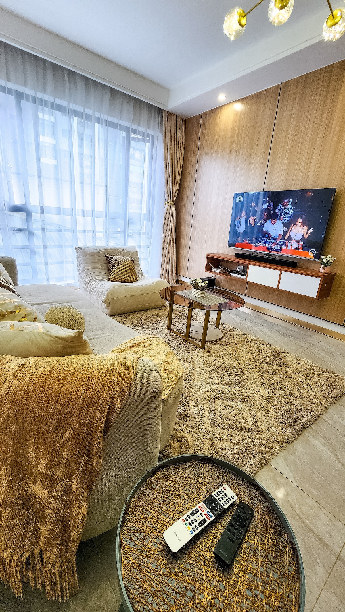 Perched on the 17th floor along Riara Road, opposite Junction Mall, this stylish apartment offers stunning city views and modern elegance. With Carrefour Supermarket, a movie theatre, coffee shops, and diverse eateries just steps away, convenience meets luxury. Its open-concept design, sleek finishes, and expansive windows frame vibrant sunrises and twinkling nights, creating a unique haven that blends Nairobi’s dynamic energy with serene sophistication.