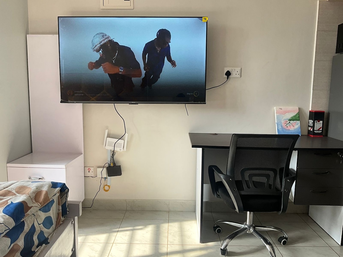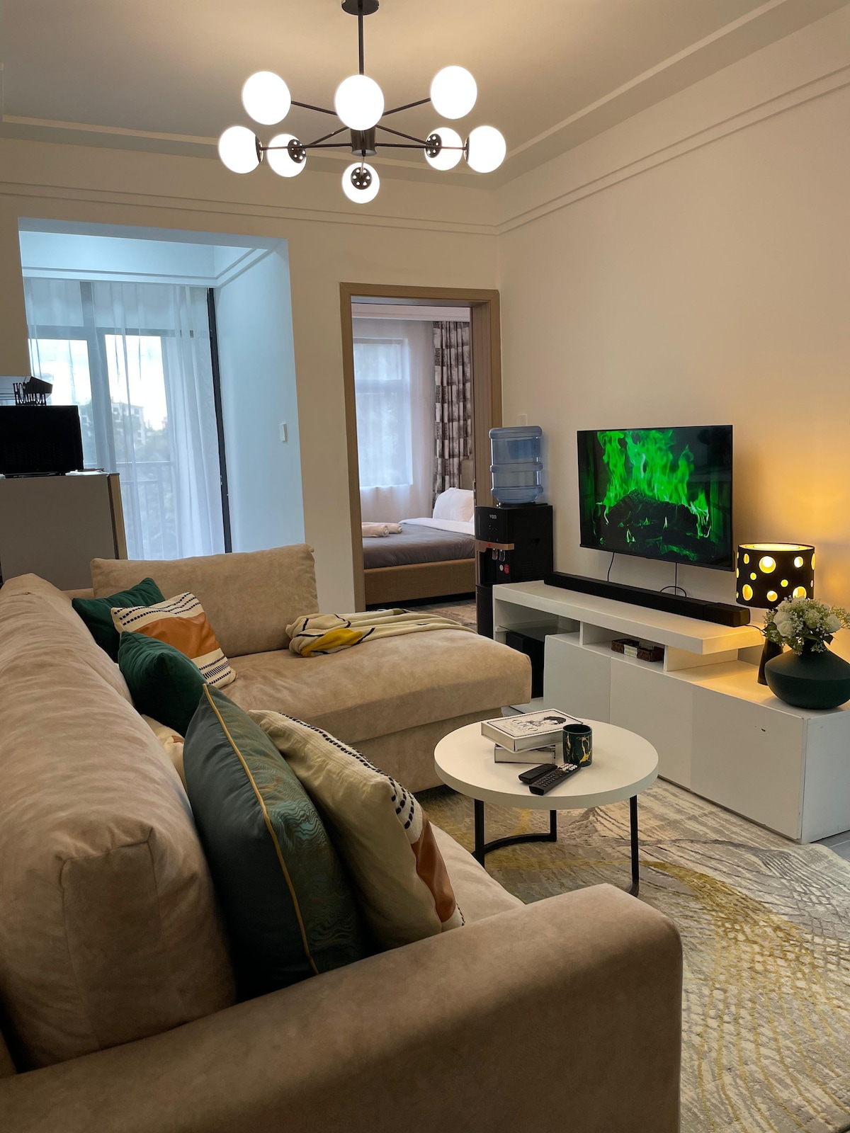 Relax at this unique and peaceful 1 bed retreat . It is a brand new 1 bed apartment ;clean with a queen bed. Its equipped with excellent hot showers, comfortable modern couches and high speed internet. You will find a well equipped kitchen, minimalistic concept and awesome city views. It has Has a full backup generator, a heated pool, state of the art gym and children play area. The location is also excellent with hustle free transportation.