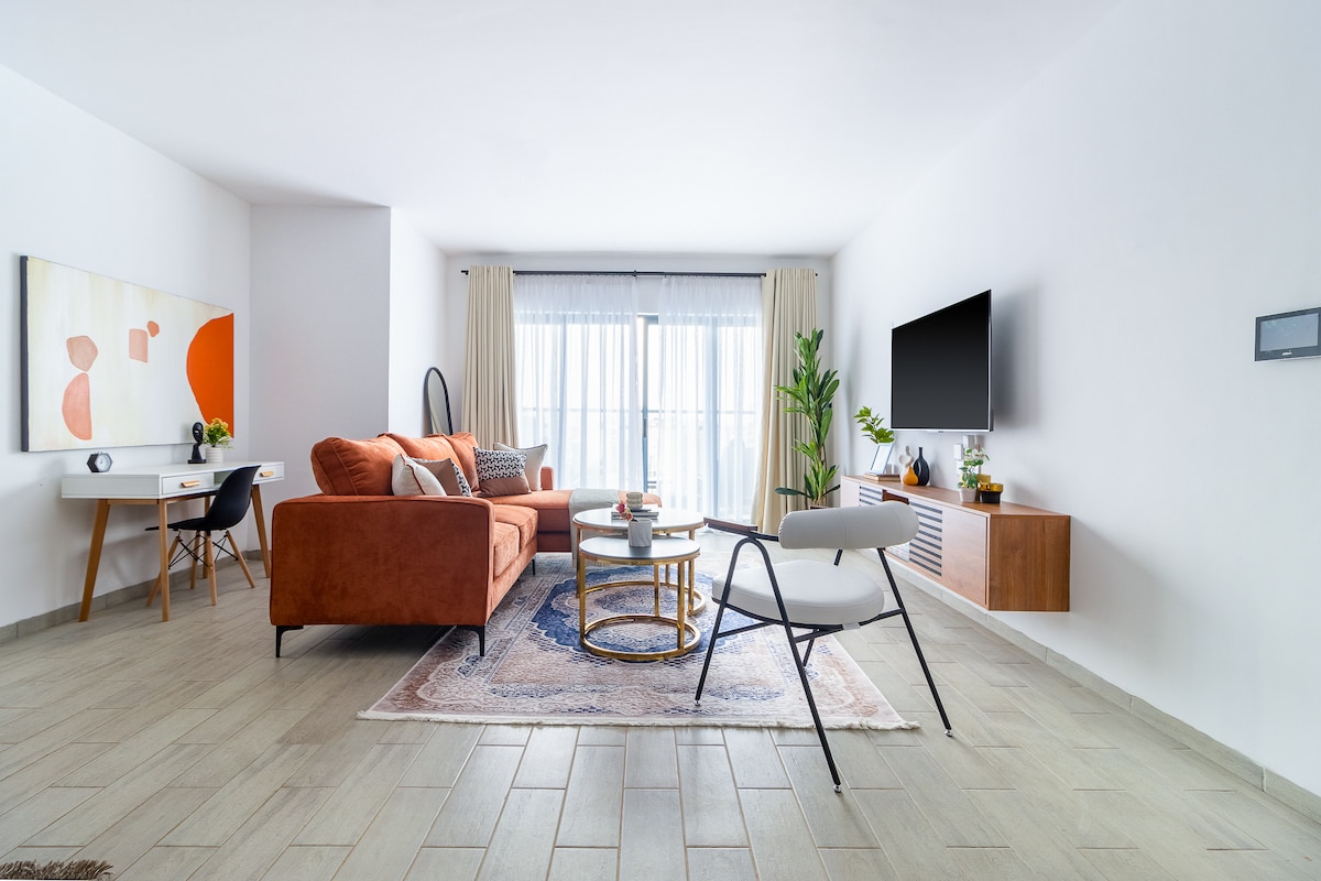 A calm, stylish escape in the heart of Kilimani. This thoughtfully designed apartment blends warm earthy tones, soft lighting, and natural textures to create a cozy, modern stay. Relax in the sunlit living room with its rust-toned sofa and curated art, enjoy meals in the sleek dining area, or cook in the fully equipped kitchen. At night, unwind in a serene bedroom. Perfect for solo travelers, couples, or families seeking comfort, style, and convenience.