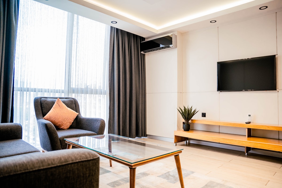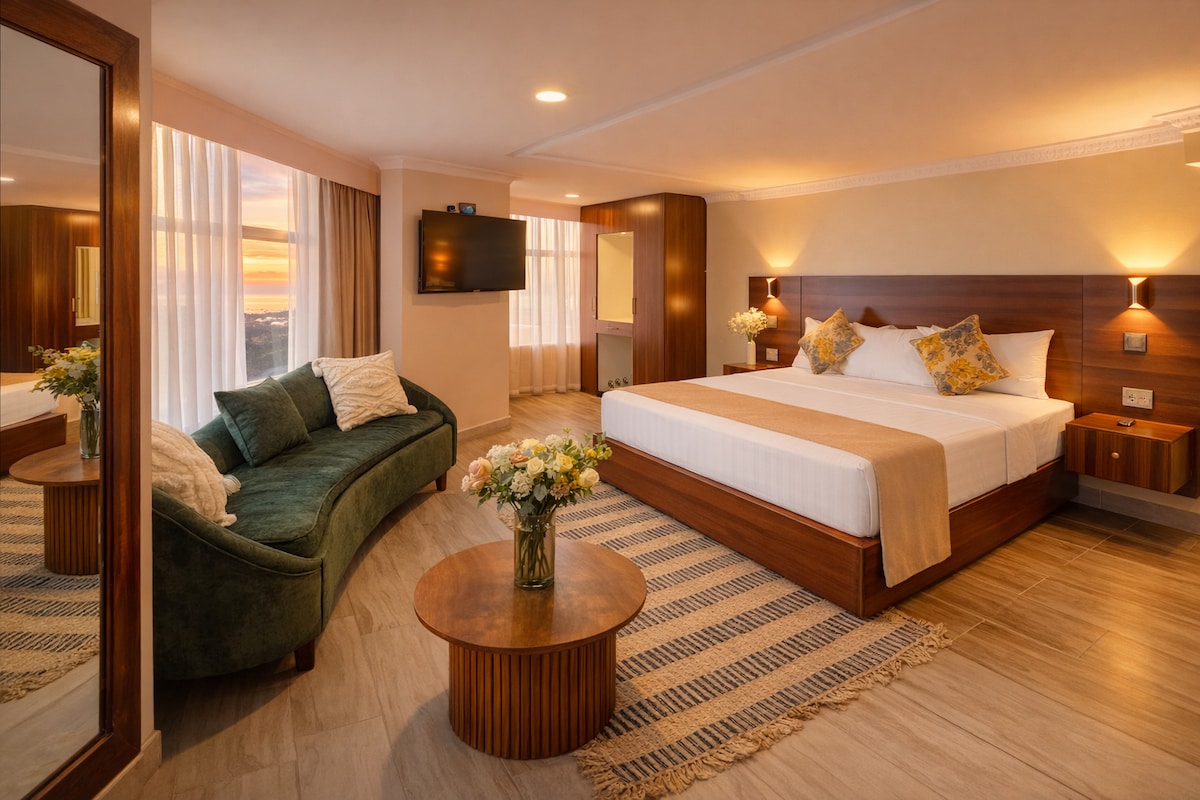 Indulge in our spacious King Suite at Light Villas Gigiri. Featuring modern décor, a plush king-size bed, and a dedicated work area. Enjoy natural light and city views. Amenities include high-speed Wi-Fi, smart TV, and an en-suite bathroom with premium toiletries. Access our gym, sauna, steam room, jacuzzi, and conference facilities. Located in Nairobi's prestigious Gigiri district, near the United Nations Office and Village Market.