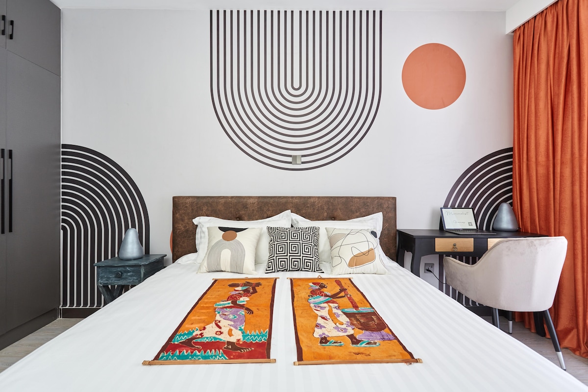 Escape to this 5* Elegant African Home with amazing modern decor on the 13th floor, offering breathtaking views of Lavington. Unwind with an 85” TV and streaming options like Netflix, HBO, and more. The master boasts a king bed, and the kitchen is fully equipped with modern appliances, including an espresso machine. Enjoy free parking, high-speed Wi-Fi, a balcony with sunset views, and access to a gym, heated pool, and rooftop garden—all with 24/7 security for peace of mind.