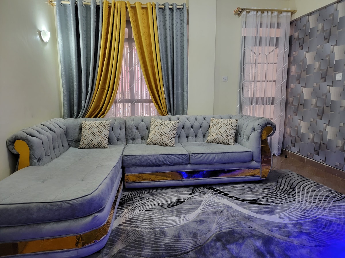 Relax with the whole family at this peaceful place to stay....The decor will give you a relaxing mood . open plan kitchen ,well equipped. well lit and very clean,the Leaving room balcony open to a well manicured fountain space with fresh air. we are centrally located to Westland, upper hill,CBD and the karen. Easy accessibility to schools like the Braeburn, french school,Riara.Security is top notch we are 3 km away from kilimani police station.