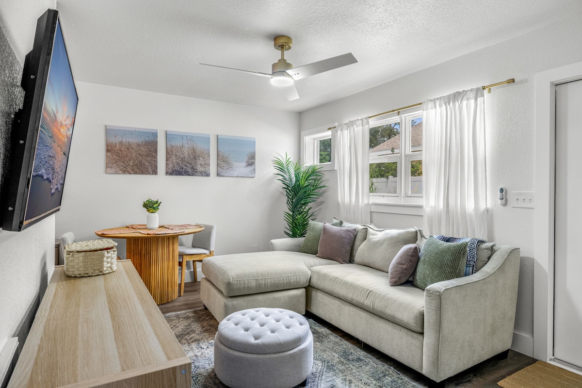 Nestled among the oak tree lined streets and historic homes of Tampa Heights, this little carriage house studio apartment is the perfect getaway. Luxurious king size bed, velvet couch and gorgeous granite island kitchen makes this the perfect solo retreat or a romantic getaway for 2. Within blocks of all that is happening in the Urban Corridor, you will be in the center of it all. There is a shared patio space for dining or relaxing outside.
