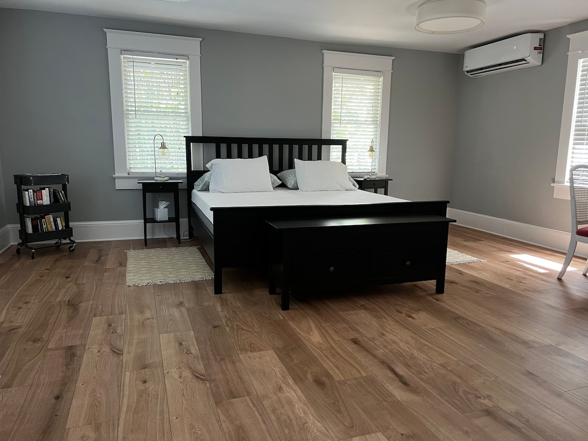 Enjoy walking to the best Tampa has to offer! Walking times: -> 10-15 minutes to Armature Works, The Riverwalk, breweries, and coffee shops -> 25 minutes to Ybor City -> 40 minutes to the Convention Center, or an 8-minute Uber ride Built in 2021, this above-garage studio unit is modern and clean, with high-quality finishes including real wood floors, marble countertops, and a 60" TV. The wet bar makes it easy to enjoy your morning coffee or evening wine on the patio or in the reading nook.