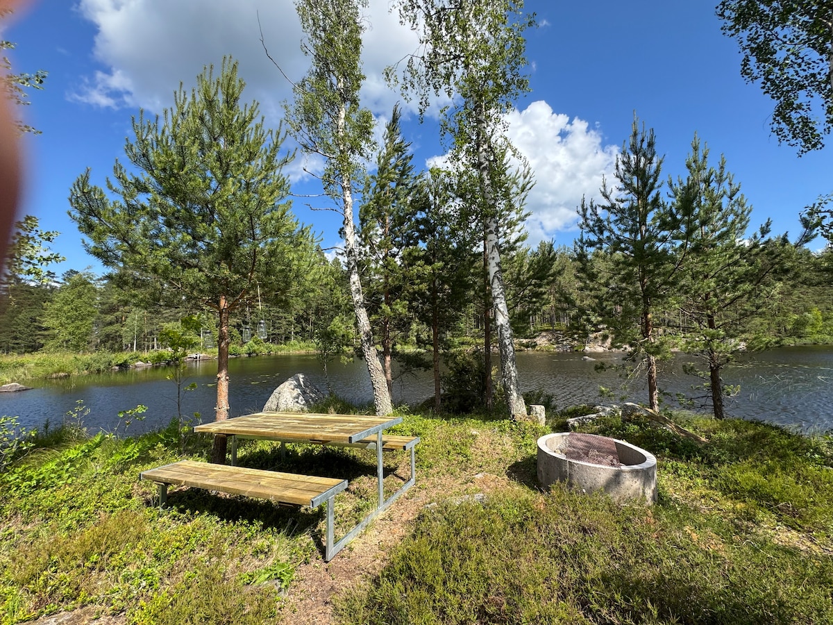 Mysigt boende i fridfullt område. Detta boende ligger nära vattnet i härlig natur där man kan bada och fiska. Man kan gå ner på baksidan av stugan och bada eller så kan man gå cirka 150 meter längs med vattnet och komma till en badplats. Det finns tillgång till spjälsäng i stugan. Det finns diverse köksredskap som kan behövas. Det finns möjlighet att låna båt om det önskas mot en extra avgift och fiskekort går att köpa via nätet.