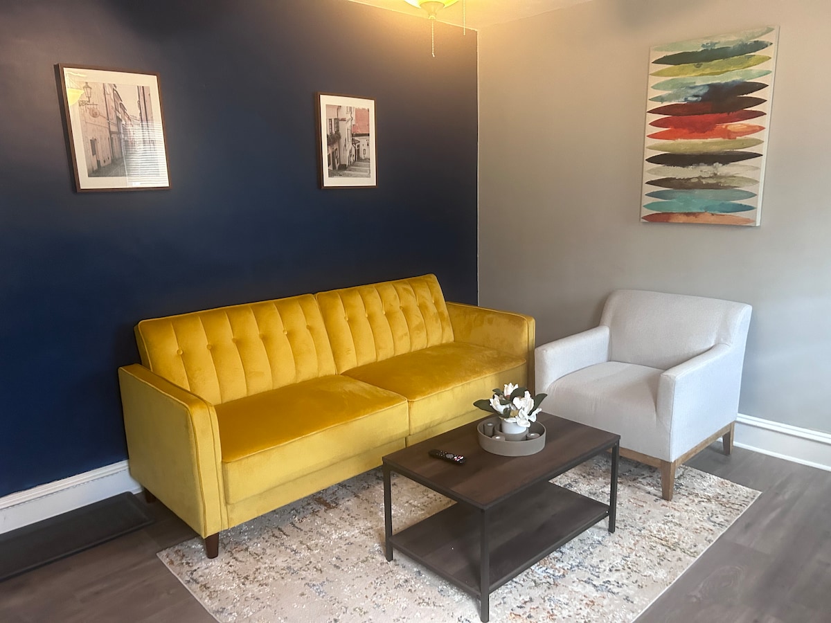 Welcome to your home away from home! this charming and cozy apartment is perfectly located 7 minutes from airport and 12 minutes to downtown Philly - ideal for both leisure and business travelers. The floor is fully furnished with a cozy bedroom, bathroom, and an additional full sofa bed. There is a 65’ tv so you can relax after a long day travel in city. We do not allow to smoking in the house. Easy access convenient self check in and washer/dryer in unit.
