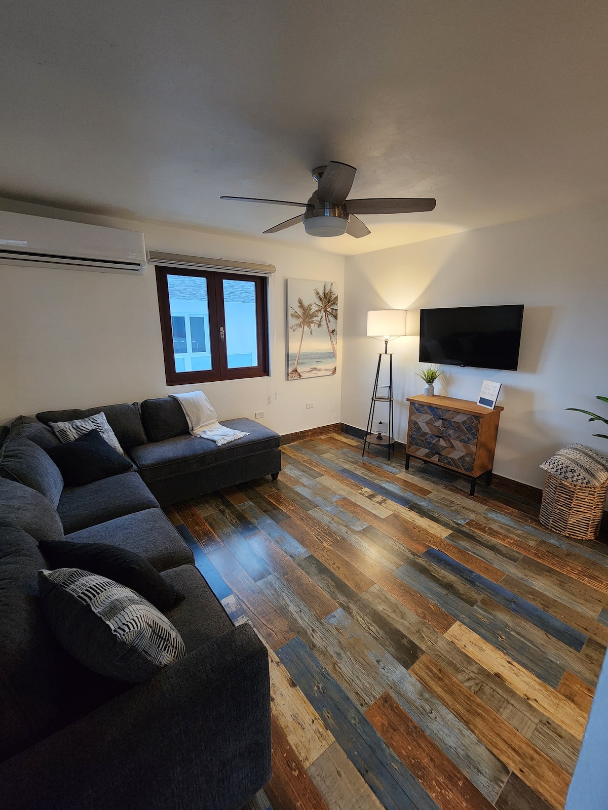 The Sands suite is located on our first floor, short walk to the Caribbean Ocean. The property have a rooftop which is a unique place to fraternize enjoy coffee, spirits, or the sunsets with a warm Caribbean breeze. We will provide a curated list of our favorite local restaurants and places to visit. Kick back and relax, it is calm, stylish and fun! We are 5 mints away from the Puerto Nuevo Beach, a blue flag beach, while the ocean is just at a few steps from our home apartment, enjoy!