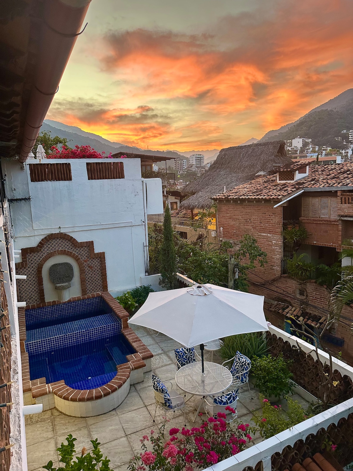 VIEWS! VIEWS ! EVERY ROOM in this unit has full on Water VIEWS! And your own Private Jacuzzi on YOUR OWN PATIO! It is located in AMAPAS 353 a boutique luxury complex WITH A ROOF TOP INFINITY POOL and gym! 1 BLOCK to the FAMOUS Los Muertos beach GREAT LOCATION! In the Romantic zone! A VERY quick walk to all the best restaurants (under 5 minutes!) This lovely home has 1 large King sized BEDROOM and 2 FULL BATHS!!! You will be greeted at the unit and shown the building by the property manager!