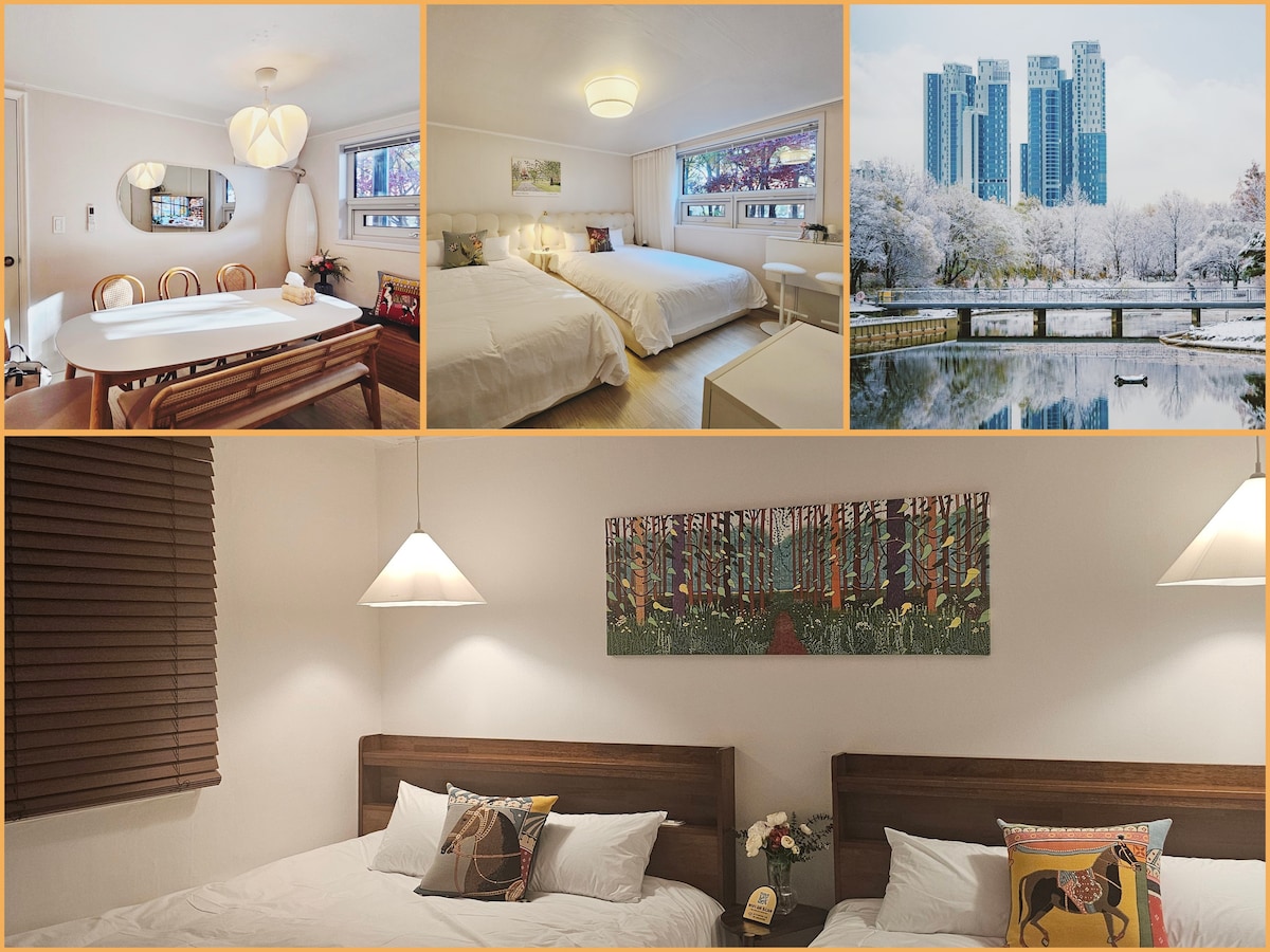 蚕室站/乐天大厦约10分钟#乐天世界大厦10分钟#Songnidan-gil#石村湖5分钟#酒店级床上用品,适合家庭和朋友入住