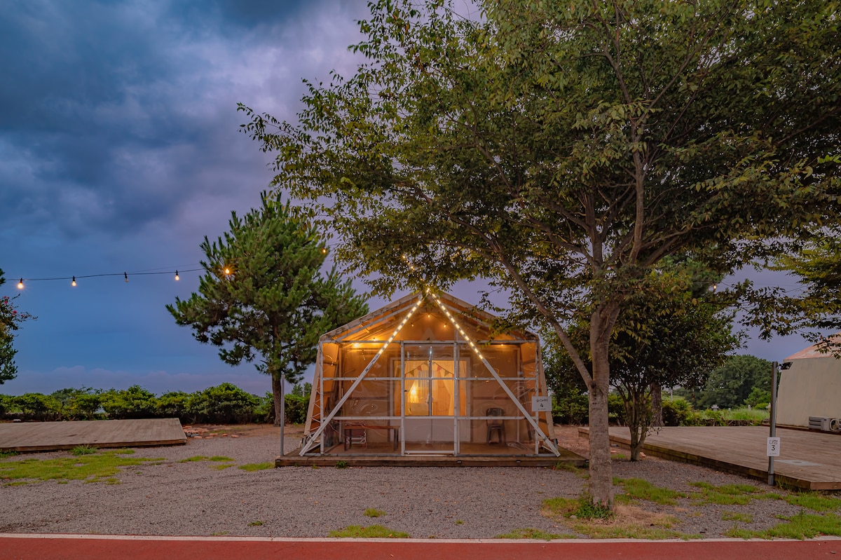 별이 쏟아지는 밤하늘 아래에서 일상의 스트레스를 잊어보세요.바쁜 일상에서 벗어나 잠깐의 힐링을 꿈꿀 수 있는 조용하고 배려 깊은 숲 속 낙원 이 특별한 공간에 머물면서 자연의 소리를 느껴보세요. 글램핑(Glamping)은 호텔처럼 편리하게 캠핑의 즐거움을 온전히 즐기실 수 있습니다. 제주도 중산간 해발 400고지의 1만여평의 넓은 초원에서 직접 숯불바비큐도 해서 맛보고 고요한 불멍을 하며 제주의 푸른밤에 흠뻑 빠져보는 특별한 경험을 맛볼 수 있습니다. 멀리 펼쳐진 애월 해변과 한림해변을 바라보며 잊지 못할 추억을 만들어 보세요 ~~ 특히 평일에는 저렴한 가격으로 더욱 조용하고 프라이빗한 시간을 즐기실 수 있습니다.