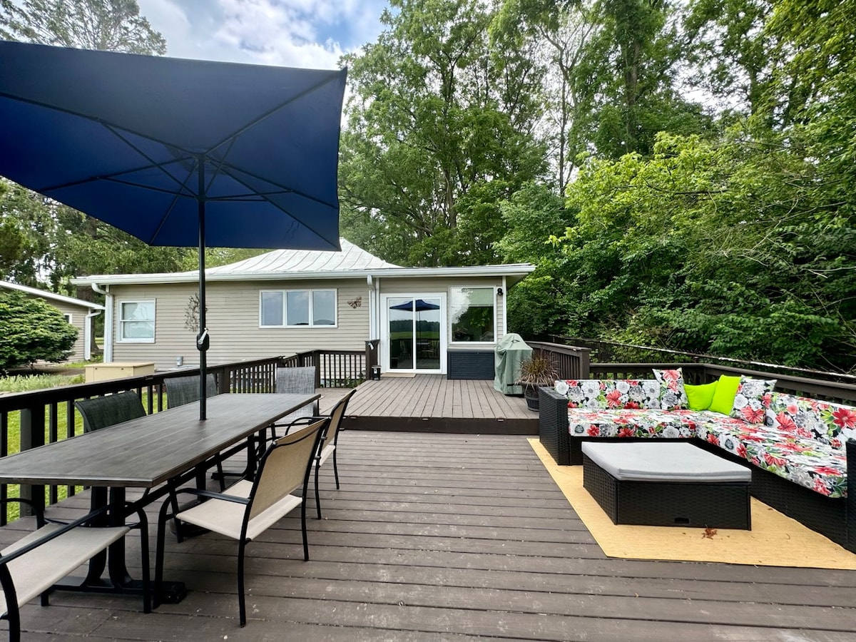 River front. Peacefully quiet. Fire pit, kayaks and canoe. Our place is less than 10 minutes to downtown Yellow Springs. You’ll love our place because of the location, situated beside the Little Miami River, a state and national scenic river and Glen Helen nature preserve. Our place includes the use of two kayaks, a canoe, fire pit and grill. We also supply everything you need for these fun activities.