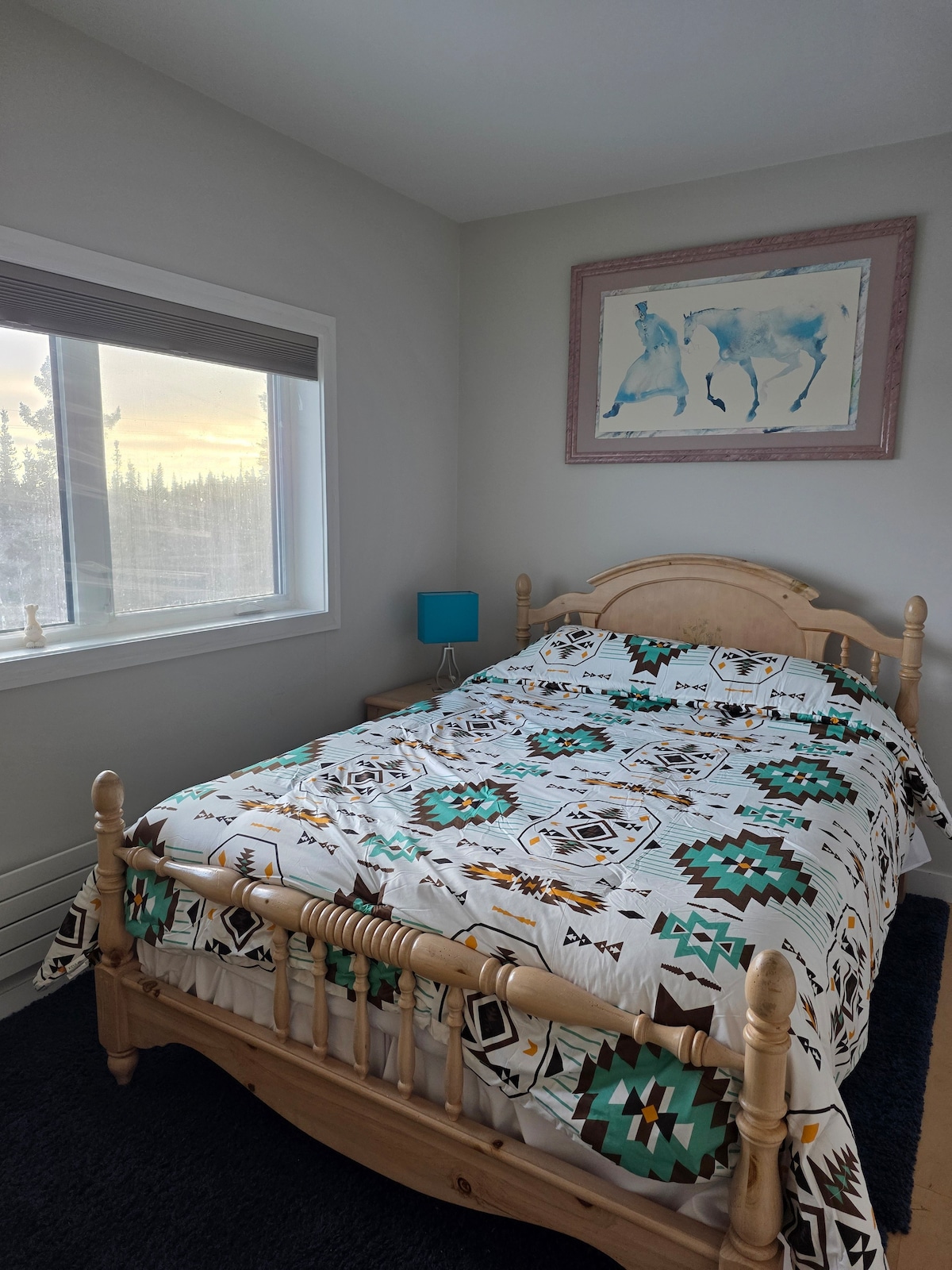 Welcome to Aurora Over Range Lake! Our suite is located on a quiet street, within a short walking distance (15 minutes) to the grocery store, liquor store, shopping, restaurants etc. Only a short drive to sport facilities, airport. Easy access to Range Lake and walking trails directly from the backyard, perfect spot to view the Aurora Borealis over Range Lake! Public transit is available with a bus stop right in front of the house. Parking with outlet to plug in a vehicle available upon request