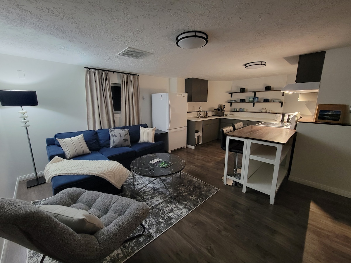 Welcome to your cozy one-bedroom suite in the heart of Yellowknife. Nestled on the popular Frame Lake Trail with instant access to nature, just steps from Somba K’e Park and a short walk to downtown, it’s ideal for work travelers, couples, or anyone seeking comfort and convenience. Inside, you’ll find a comfy king bed, full bathroom, bright living area with sofa, desk, and Smart TVs, plus a kitchenette for easy meals and morning coffee. Have questions before booking? Send us a message!