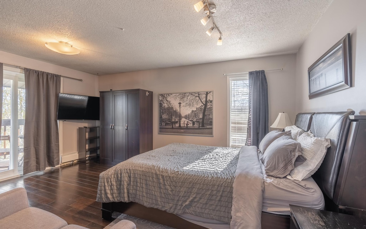 Plum's Place is a charming one-bedroom home, perfect for couples, solo travellers, or those visiting for work. Backing onto green space and trails, it offers stunning aurora views. Enjoy a peaceful stay with all the comforts of home, surrounded by nature yet close to everything you need. There are two black dogs on the premises. While they are upstairs and separate from the suite, some occasional barking may be heard. We recommend this stay is best suited for guests without pet allergies.