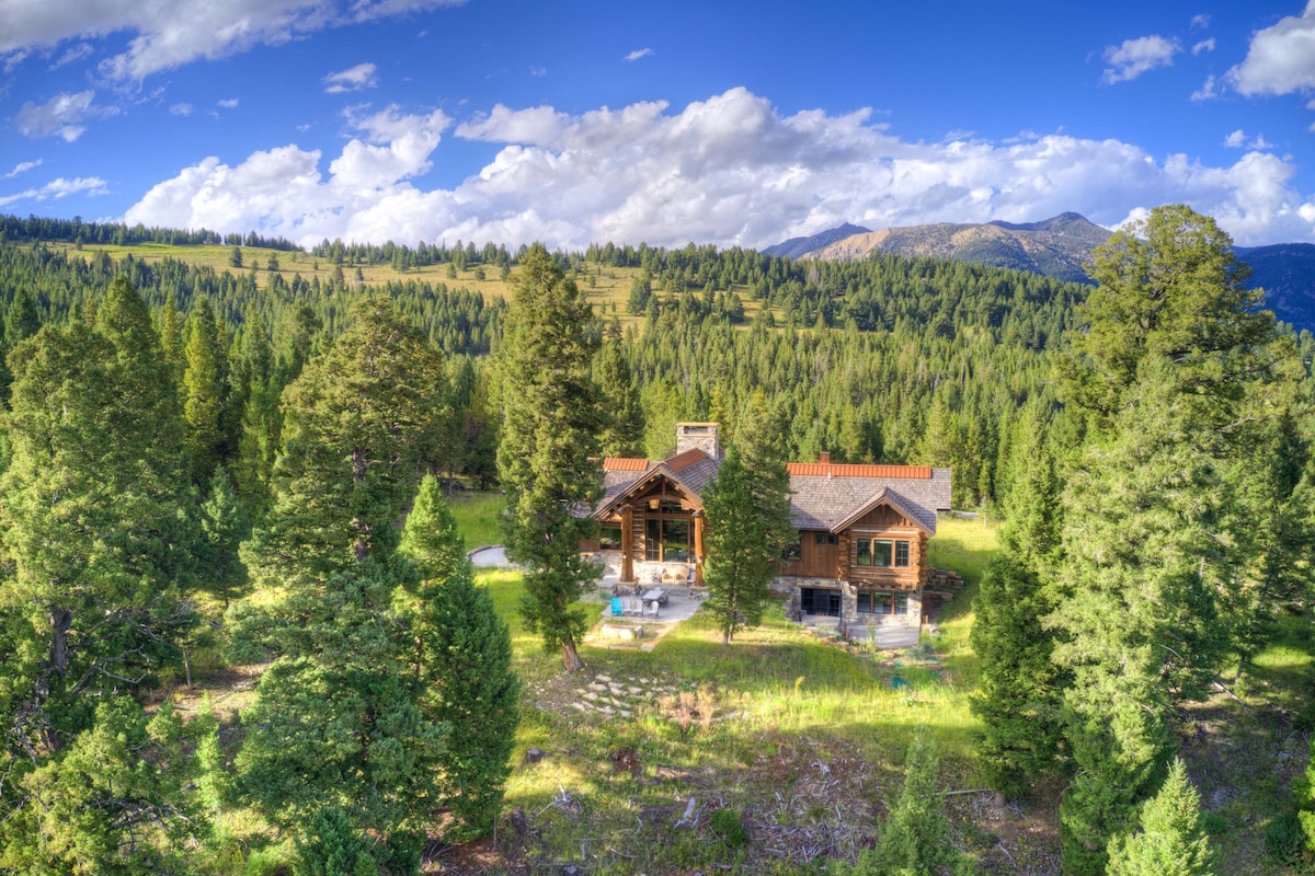 Featured as one ofAirBnB's most wish-listed ski homes! Breathtaking view of Lone Peak. Stacking windows that open to the deck with hot tub, grill and slide for the kids! Pure oxygen pumped into two main bedrooms. Indoor and outdoor fireplace. Open floor plan with 25' vaulted ceilings. Custom bunk beds. 1 mile drive to Big Sky parking lot and .3 mile ski/walk down to White Otter 2 lift from house (can't ski back).