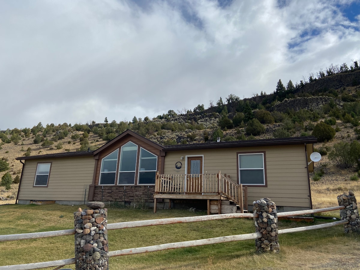 A “rustic” cowboy themed home located close to Yellowstone National Park, perfect for summer AND winter! It is cozy with a wood burning stove & a fire pit in the yard to help your family enjoy the stars at night. Fun opportunities in the area are endless; hiking, horseback riding, fishing, boating, hot springs, hunting, snowmobiling, skiing, white water rafting, wildlife viewing & so much more! Many restaurants/shops nearby. Wildlife is often on the property, horses, dogs & mountain views!