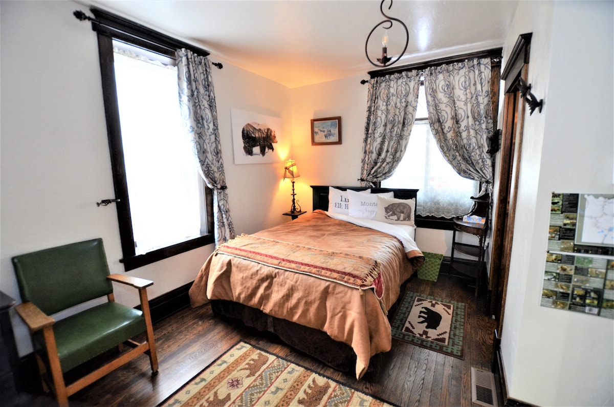 Welcome to the historic Grabow hotel building (1908) in the heart of downtown Livingston, MT. Lake is a 1BR that sleeps up to 4 with a queen bed in the bedroom and a comfortable queen pullout couch in the LR (advise us to prep it if needed). Two sets of stairs. Charming LR w/ sunny mountain view, full dine-in kitchen, bathroom, and use of our pretty side garden. The Grabow is in the heart of the place of which Anthony Bourdain said, "This might well just be the most awesome place on earth!"