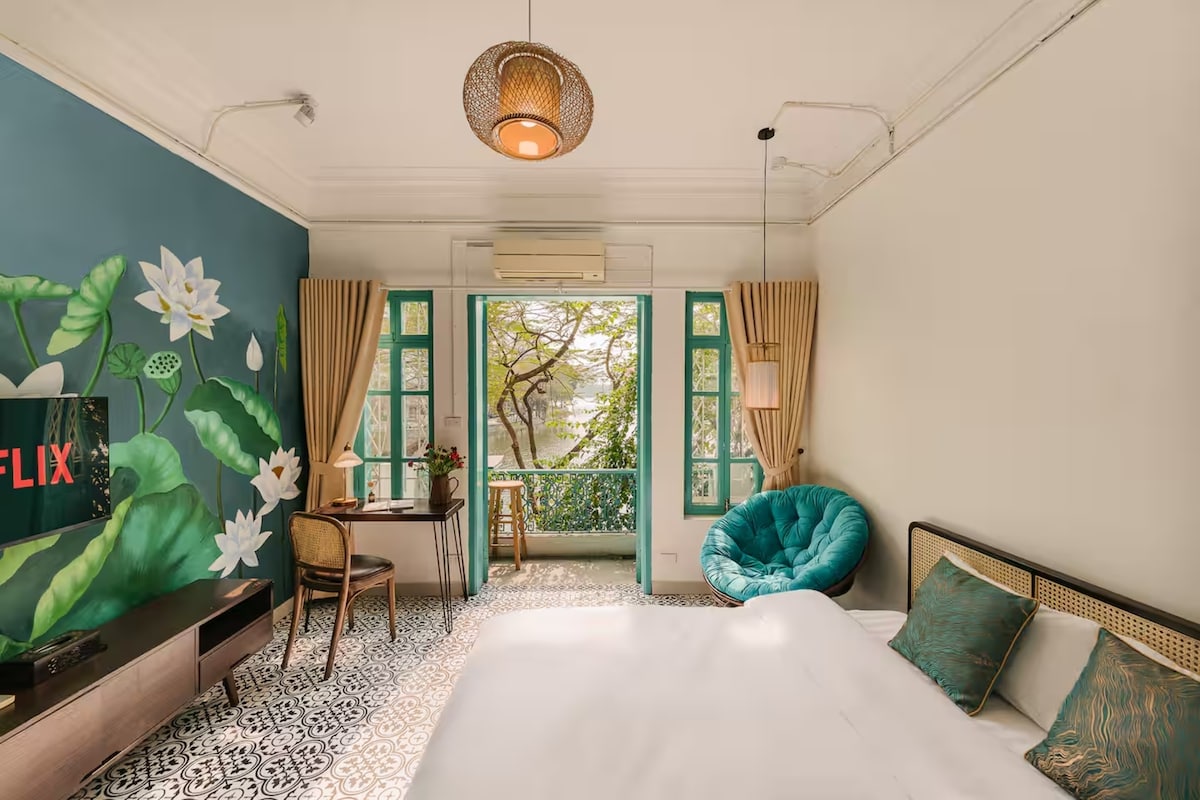 - Loft with reliable wifi is in a picturesque old building covered in lush green vines facing Westlake - Just a 30-minute drive from the airport and a 10-minute hop from the Old Quarter - Area features a vibrant expat community and numberous cafes, restaurants, and salons, providing a lively yet tranquil retreat on a peninsula surrounded by Westlake with minimal traffic - Furniture, made from reclaimed wood in our workshop, promotes environmental sustainability and local craftsmanship.