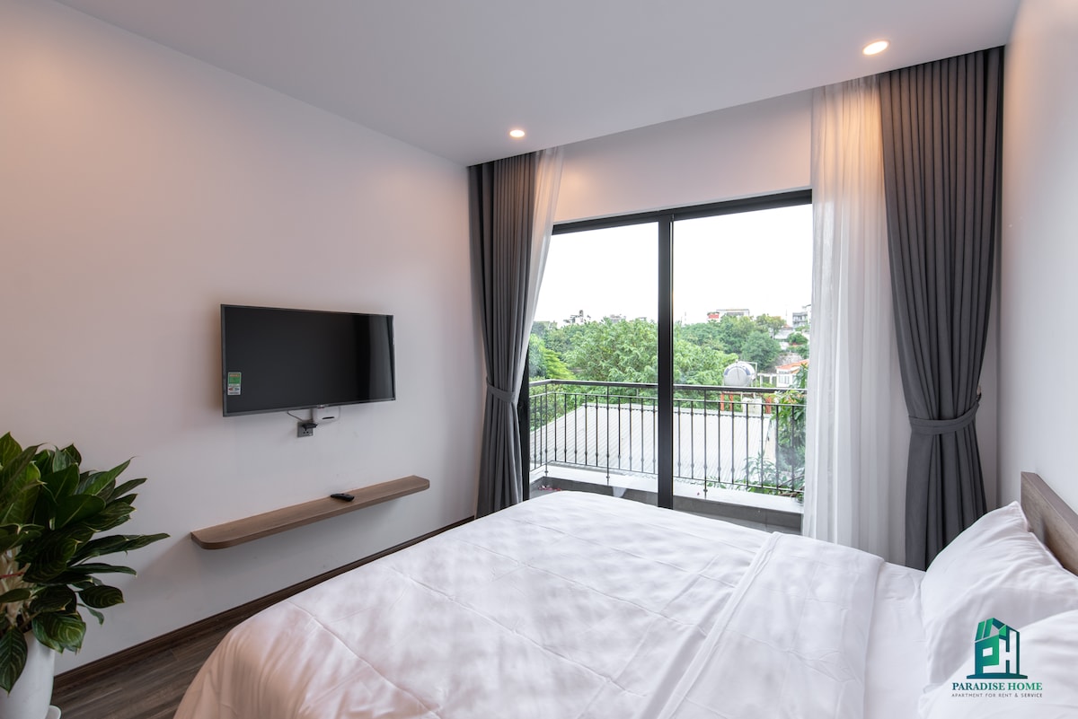 Discover a Spacious Retreat by West Lake. Just a 5-minute walk to the tranquil lakeside, this 55m² one-bedroom apartment offers both comfort and convenience. The room is filled with natural light, with a private balcony where you can relax after exploring Hanoi. - Elevator access - Private Washer & Public Dryer - Fully equipped kitchen - Huge Netflix TV - Motorbike parking - Tours promotion - Airport pickup & SIM card available for sale - Netflix