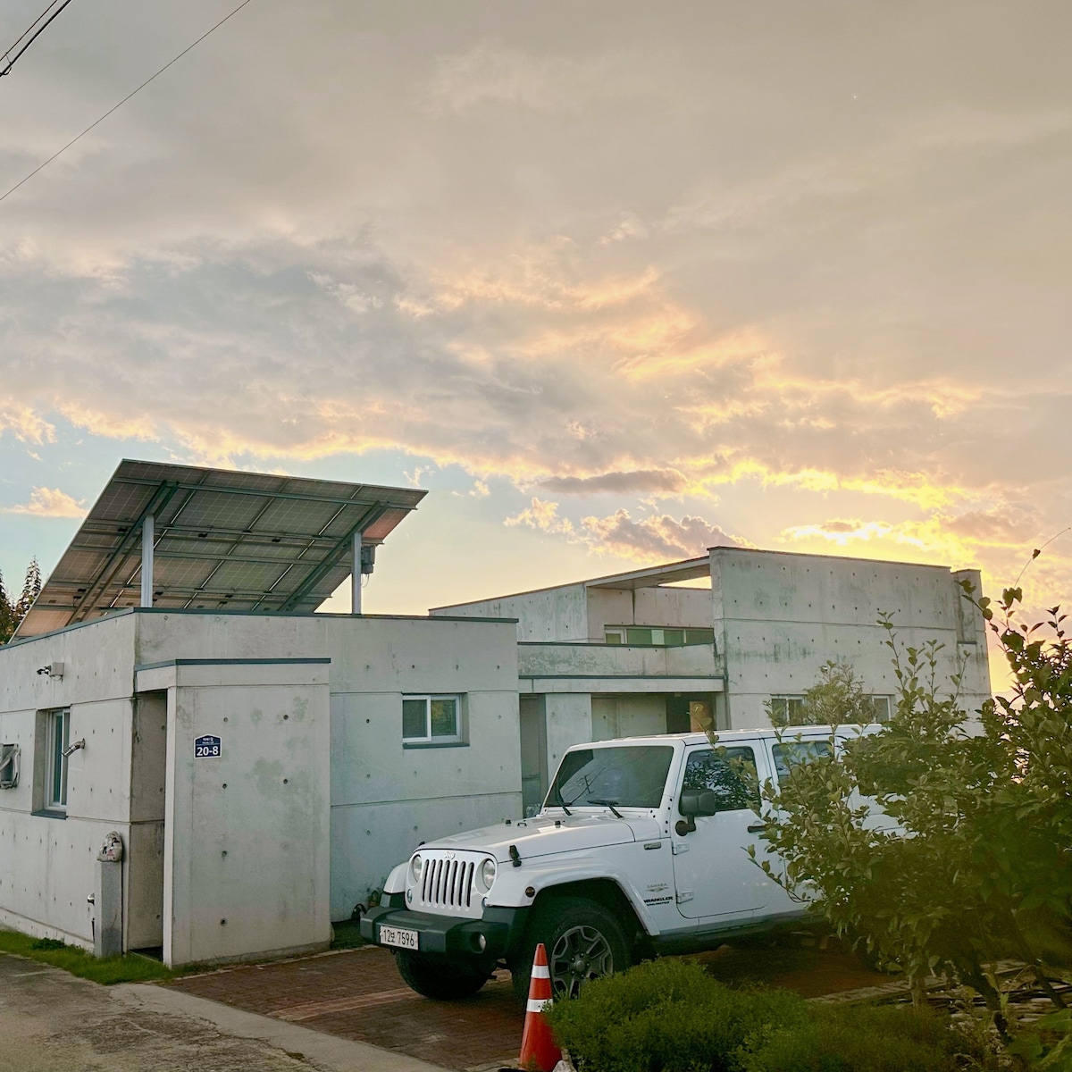 건축가이신 아버지께서 가족을 위해 오랜 공을 들여 직접 설계하고 시공한 노출 콘크리트 외벽의 단독주택입니다. 조용한 시골마을의 분위기와 더불어 현대 주택 특유의 세련됨을 만끽할 수 있는 아늑한 힐링을 위한 공간입니다.