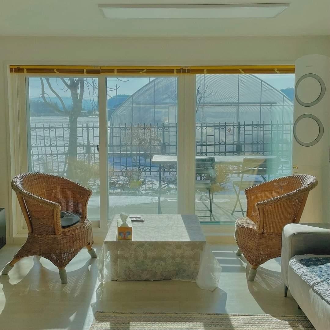 We have spacious Garden with lovely pine trees and seasonal flowers. You can feel healing and relax with our lovely calm garden. We have also small farm growing ingredient fruits. you can pick & enjoy eating for breakfast in summer season. You can take a walk along the riverside path near our house and enjoy water skiing and paragliding. Public transportation is also available. It's a 10 - minute walk from Asin Station on the Gyeongui-Jungang Line. Pick-up from Asin Station is also available.