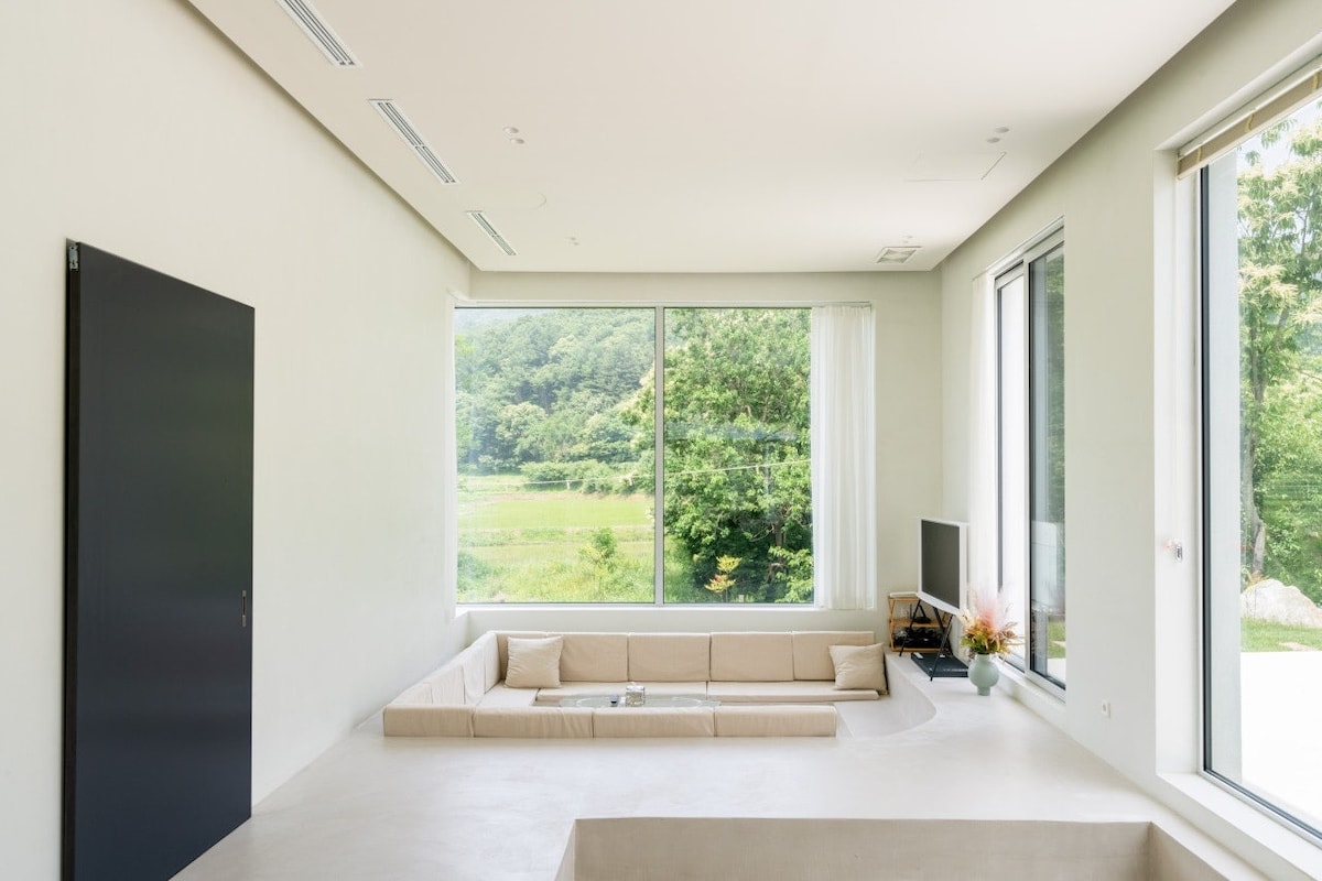 안다미로 는 "그릇에 넘치도록 많이" 라는 순 우리나라 말입니다. 뉴욕출신 젊은 건축가의 건축설계 디자인으로 젊은 감성에 전원생활의 여유를 독채의 프라이빗 함으로 느껴볼수 있는곳 도시생활 의 지친 일상에서 벗어나 온전한 쉼 과 재충전을 할수있는 공간. 퇴근하고 매일 TV앞에 앉아 TV보다 잠이드는 일상을 반복하다보니 문득 가족간의 대화가 너무 없어진것 같은 느낌이 들었어요.... 그래서 우리가족 힐링을 위한 세컨하우스에서는 가족들과 대화하는 시간을 만들어 보고자 TV를 과감하게 놓지 않았습니다. TV대신 대형 120인치 빔프로젝터 로 온가족이 영화감상후 청정자연을 가까이서 느끼며 평소 가족들과 부족했던 대화와 소통이 많이지는공간 사랑이 넘치도록 가득한 안다미로 가평 에서 매일의 지겨운 일상을 벗어나 쉼 과 힐링을 동시에 안다미로 화이트 는 개방감 있는 높은층고 와 넓은 주방 과 거실공간 으로 4인이 머물기에 너무나 쾌적한 공간입니다.^^
