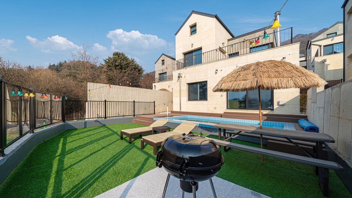 원점 : Point in Circle 은 양평 용문에 자리하고 있습니다. 프라이빗 독채 '원점'은 호스트 부부 이름을 한 글자씩 따와 지은 숙소이름입니다. 누구나 한번쯤 꿈꿔왔던 공간으로 인테리어를 하였습니다. 언제나 행복한 기억들로 채워질 공간입니다. 초록초록 넓은 정원이 있고 외국에 온듯한 야외테라스에서 자연을 느끼며 영화 같은 휴식을 즐겨 보는 것은 어떨까요? 잔디정원에서 신나게 뛰어놀고 다트와 탁구게임을 하는 아이들을 바라보며 따뜻한 햇살과 한가로움을 와인한잔과 함께 즐겨보세요. 꿈같은 하루가 될 것입니다. 원점은 가족, 연인, 친구들과의 여행에 적합합니다. * 침대가 있는 침실2, 추가인원시 플레이룸에 요와이불이 준비됩니다. * 네스프레소 커피머신이 준비되어있습니다. * 넷플렉스를 볼수 있는 50인치 tv와 빔프로젝트가 있습니다. * 각종 오락시설(당구대, 탁구대, 다트, 어린이책, 어른책,보드게임)이 준비되어 있습니다.