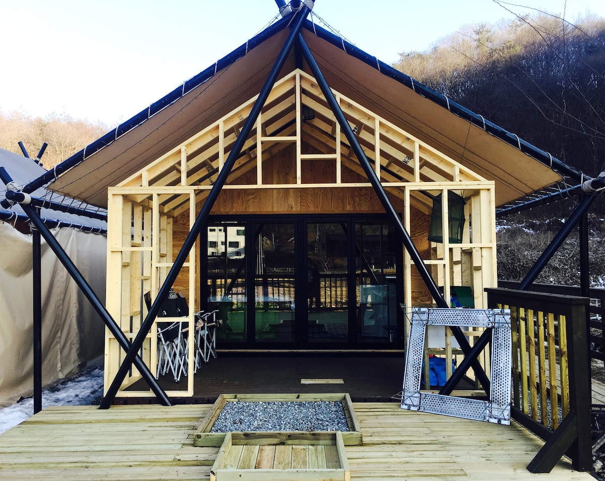 Slightly more than premium luxury glamping -- it's Camping Reimagined at Banu. Experience a whole new dimension in effortless camping set amidst lush open greenery right by the banks of Noil River in charming Hongcheon, Gangwondo. Come and just relax, star gaze and enjoy the peaceful surroundings.