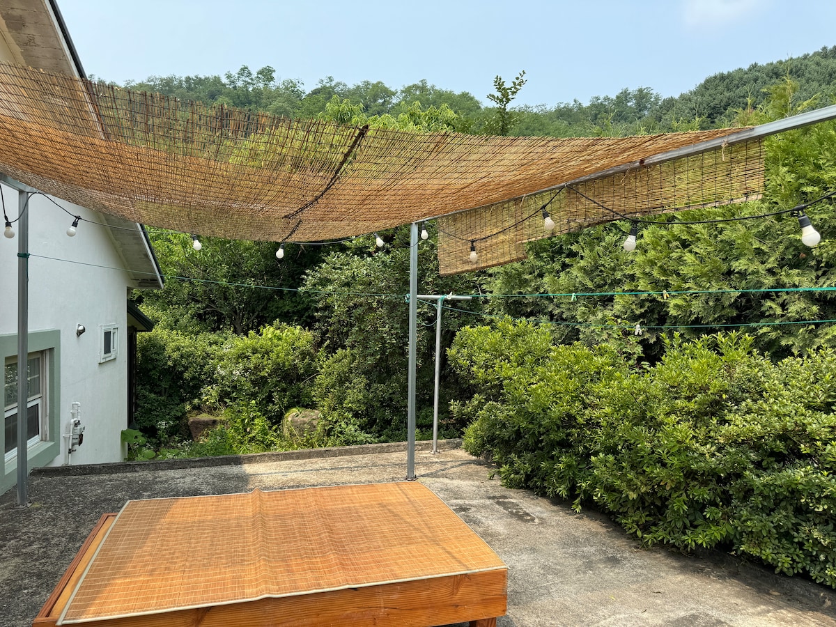 (독채)더 머물다 IC 에서 2분 낭만 있는 캠핑 느낌 뷰맛집~바베큐 불멍 감성 펜션
