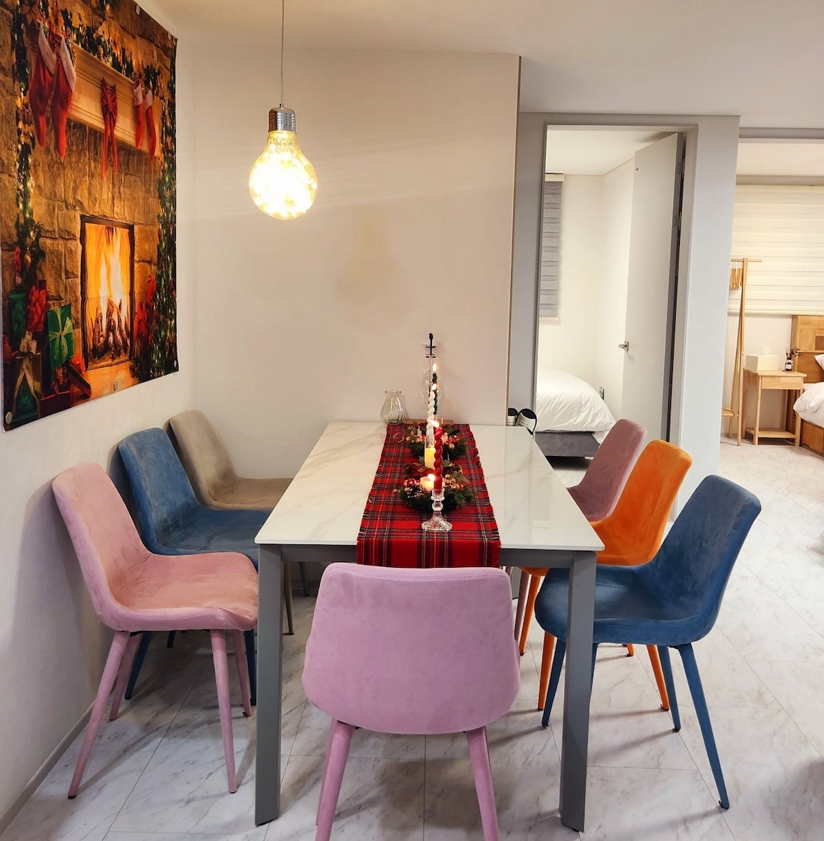 ✅️ 간이수영장은 사전신청필수(아이들용) ✅️입실 오후 5시 / 퇴실 다음날 오후1시 (얼리체크인 1시간 1만5천원 추가_사전신청필수) 청소인원추가 투입되어야해서 추가요금 받습니다. ✅️단독 1층 포차바베큐장 / 옥상은 불멍 (각각 별도사용료있음) ✅️1층과2층은 외부계단으로 완전분리. 1층은 호스트가 있습니다. 🏠2층 독채 사용 _ 욕실1개,거실,방3개,주방, 거실TV,빔프로젝트 ✅️샴푸,바디워시,컨디셔너,칫솔,치약 제공 ✅️설탕,소금,간장,식용유 제공 (그 외 양념은 제공되지 않습니다.) ✅️전자렌지,가스렌지,그릇,식기류 구비완료 ✅️프리미엄 유튜브,웨이브,넷플릭스 시청가능 ✅️숙박최대인원은 8명까지 입니다.(아동포함) 📌 8명 이상일 경우 추가요금 납부시 1층 사용가능 _ 게스트룸1개와 전용화장실1개를 제공하여 1,2층 전체사용이 가능. 예약전 문의 필수 👇필독👇 📌보호자 없이는 06년생부터 숙박가능 (학생분들 입실시 신분증 확인하니 준비 필수) 📌애견동반 불가
