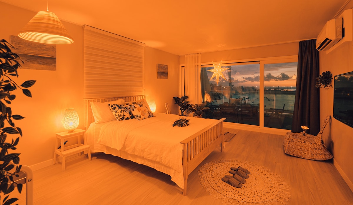 202 济州月光舒适/温馨/步行5分钟到浩德海水浴场/温馨的床宽敞的厨房和客厅