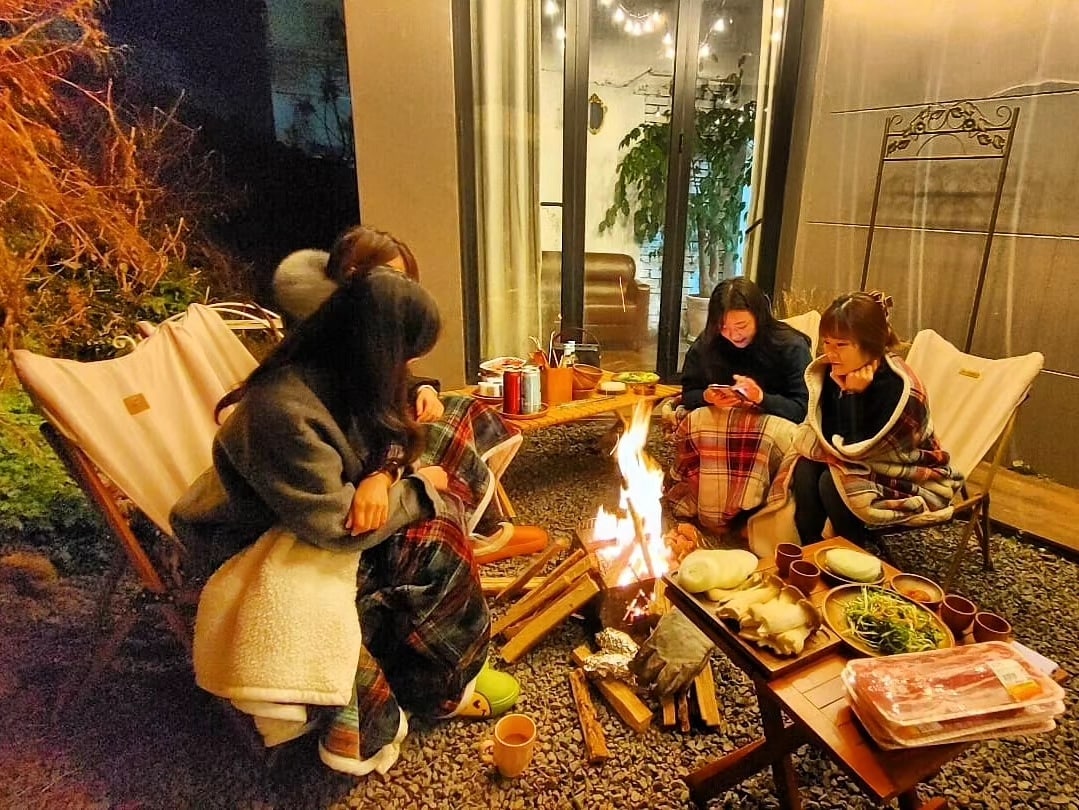 [캠핑이 있는 감성숙소]: 모닥불멍BBQ+캠핑존+빔 영화룸+엔틱 다이닝룸