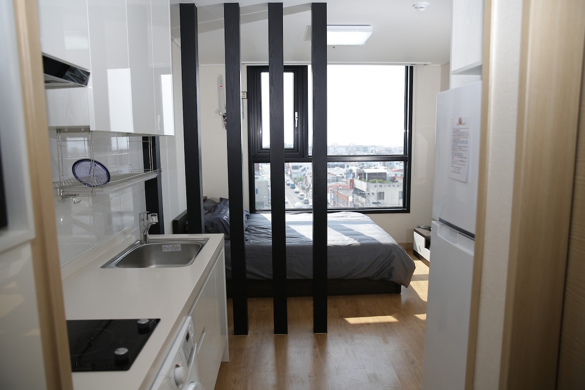 S6【机场1.7公里,5分钟】1张标准双人床的高级公寓,济州市中心