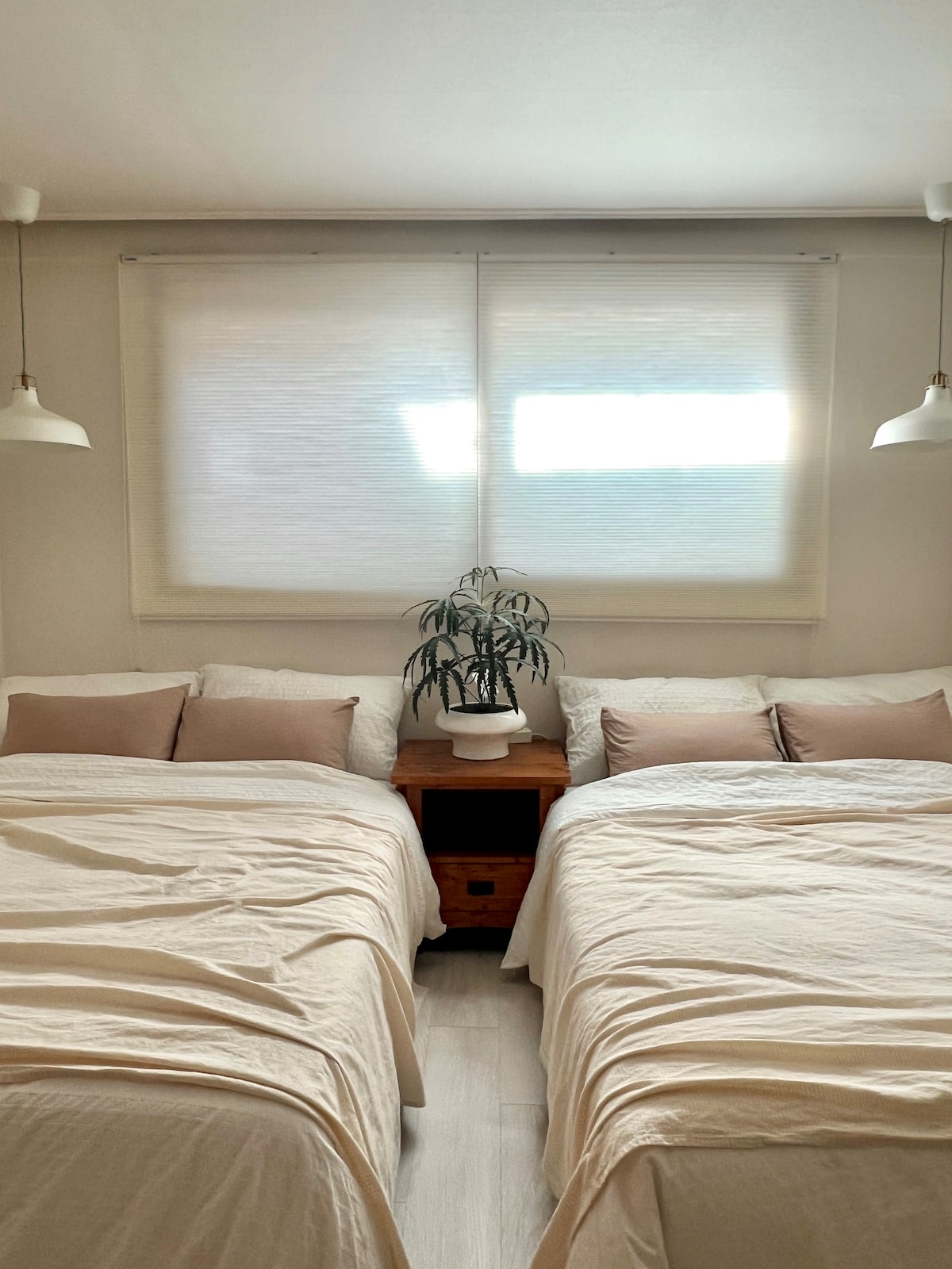 Experience the serene & cozy vibe of Under Cloud—a spacious 50m² home with two charming bedrooms, brick-finished living room, beautiful kitchen & bathroom, extra storage room, and a cozy balcony +hammock. In a quiet yet convenient area, offering easy access to Seoul’s best spots and the airport. Please click “Show more”. ☛ On foot Hongdae: 15min | Hapjeong Stn.(Line 2/6): 8min | 2 Malls: 5min ☛ By bus/subway Incheon Airport: 50min | Old Palaces: 30–40min | Myeong-dong: 30min | Gangnam: 40min