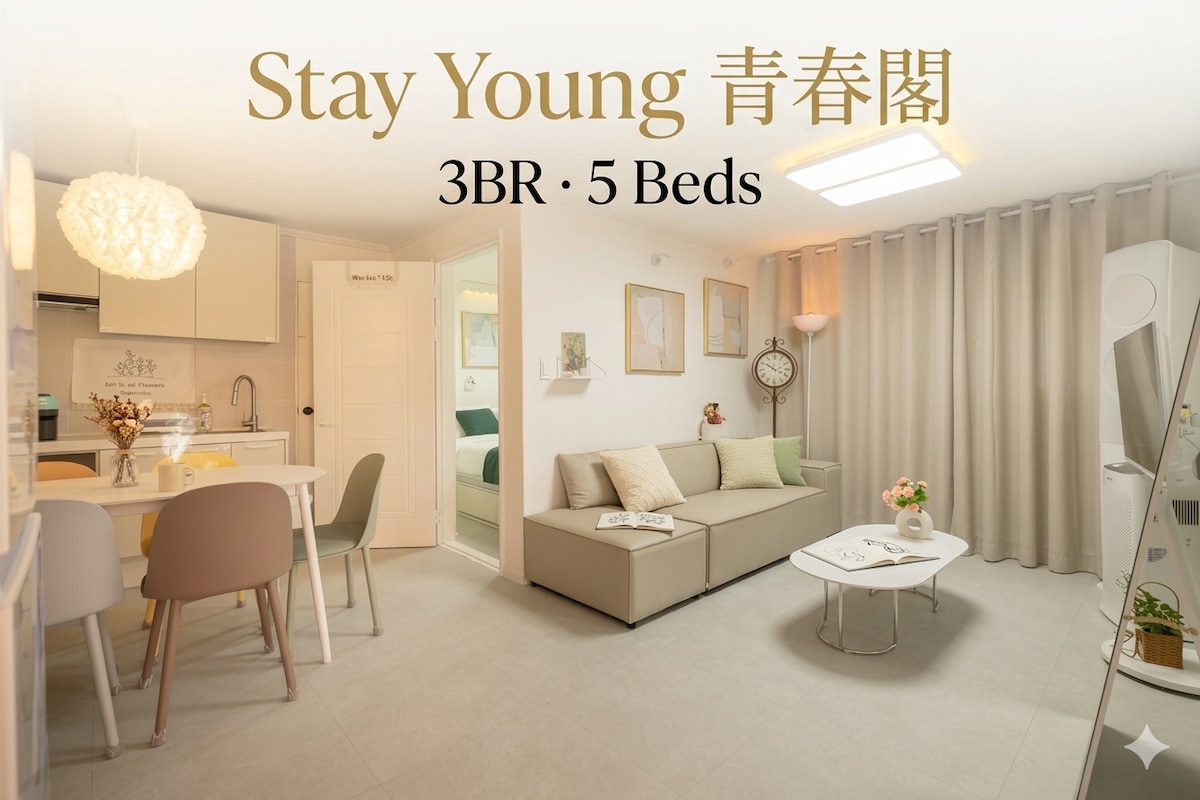 Stay Young / 粉彩浪漫 / 距离英登浦区厅站 3 分钟 / 3 间客房 5 张床 可容纳 8 人 / 靠近弘大明洞 KSPO