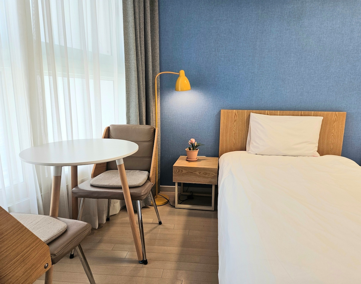 남포동 중심가에 위치한 오션뷰가 보이는 레지던스입니다. 숙소 주변으로 포차(Pocha), 깡통시장, 국제시장, 자갈치시장, BIFF광장, 먹자골목이 있어 구경거리, 먹을거리가 다양합니다. 체크인 15:00 체크아웃 11:00 기준 인원 2인 / 최대인원 3인 슈퍼싱글 2개 (1인추가시 저상형 폴딩매트리스) TV(넷플릭스), 무선인터넷 설치 기타 주의사항 건물 내 전 구역 흡연 금지. (전자담배 포함) 반려동물 입실 불가. 인덕션 사용불가 (계속된 부주의로 인한 화재경보 발생) 객실 내 바베큐, 버너, 초, 인센스, 모기향 등 화기의 사용을 금지. (화재 발생시 손해배상 청구) 10시이후 고성방가 금지 객실 사용 후 물품 분실, 훼손 및 파손, 린넨 오염 시 그에 따른 비용 청구. 미성년자는 보호자 없이 숙박 불가. 주차안내 건물 내 주차 불가. 자가 이용시 사설 유료주차장을 이용하셔야 합니다. 주차 문의시 가까운 사설 유료주차장 안내해드립니다.