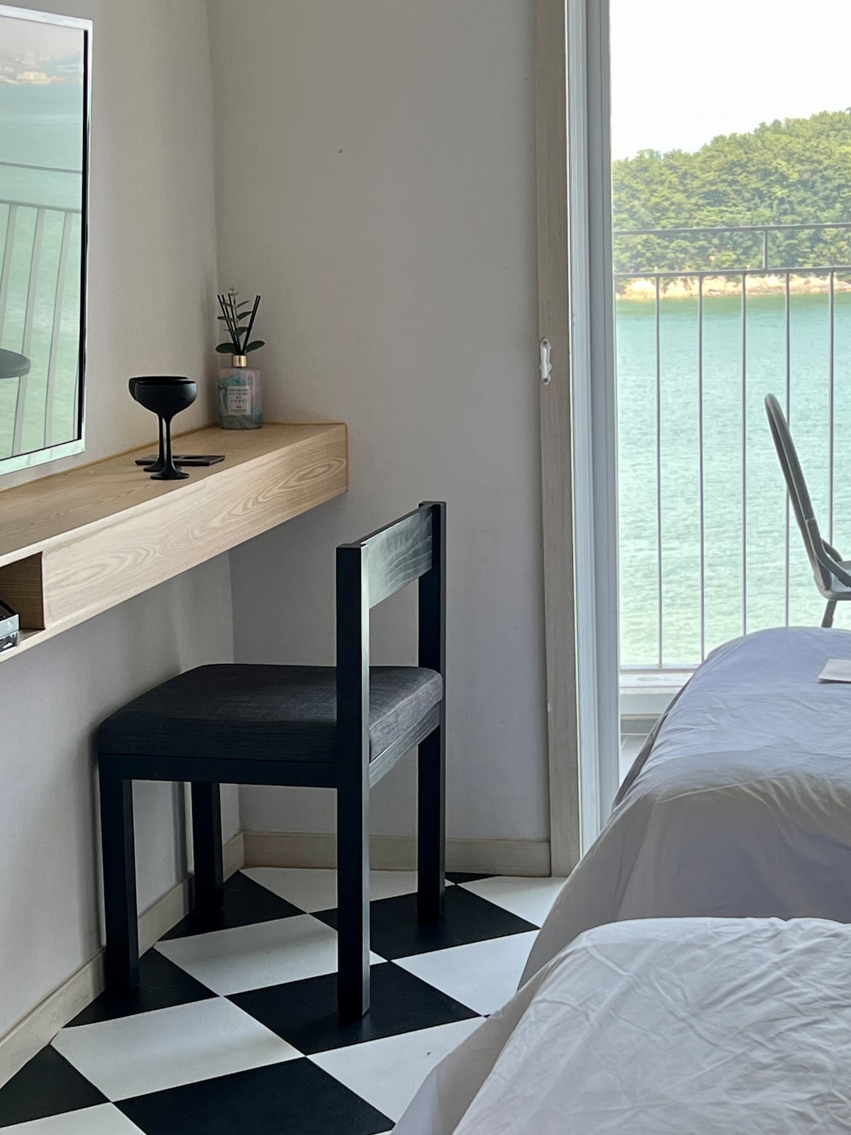 저희 숙소는 영종도 구읍뱃터와 가깝고 주변에 회센터,식당 등이 많아 여유있게 휴식을 즐기기에 좋습니다. 근처에 영종진 공원,씨사이드파크 해변 공원 등이 있어 자전거 하이킹 등 유쾌하고 건강한 여행에 적합합니다. 또한 소중한 가족인 반려동물과 함께 바다를 바라보며 휴식할 수 있는 공간입니다. 애견이나 애묘는 관리상의 문제(청소 대행사의 추가비용 청구)로 숙박1건당 1만원의 비용이 추가 됩니다. 상층 오션뷰 원룸 시야 방해 없이 영종도 바다와 작약도가 내려다보이는 테라스(테이블 및 의자 설치) 반려동물 동반 가능 1. 오션솔레뷰 오션솔레뷰 객실을 에어비앤비로 운영중입니다. 2. 고층 전면오션뷰 3. 간단한 취사 및 취식 가능 4. 반려동물 동반 가능합니다. (유튜브 및 OTT를 시청 가능(샤오미 미스틱 구비))