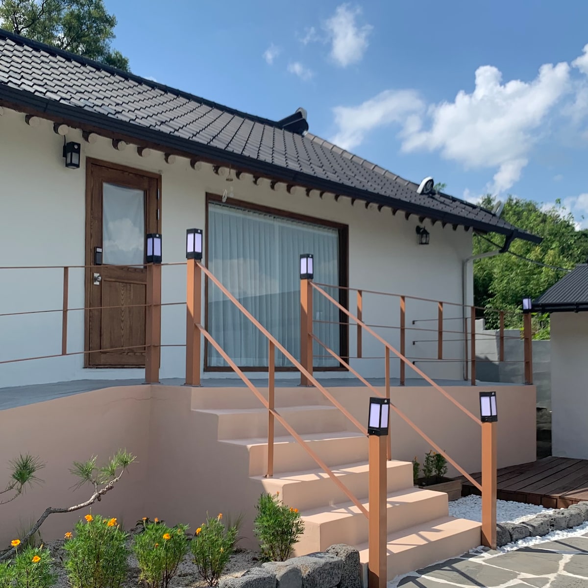🌙 달단지 스테이 조용하고 아담한 시골 마을 속 자연과 함께하는 독채 한옥 감성 스테이 지중해풍 외관과 대나무숲이 어우러진 프라이빗 공간입니다. 야외 정원엔 자작나무 숲과 함께 테라스 캠핑 가구, 바베큐 조리기구가 비치되어있습니다. 숙소 🏠 - 최정산 바람길 초입 위치 - 본채 + 대나무숲 → 독립적이고 조용한 휴식 - 야외 정원: 자작나무숲, 모스정원, 하늘 뷰 - 테라스 캠핑 , 바베큐 조리기구 비치 (※ 화재 위험으로 이소가스 버너 2개 사용) - 불멍 화로 이용 가능 - 고기·생선 등은 야외 취사만 가능 - 다양한 보드게임 및 게임기 배치