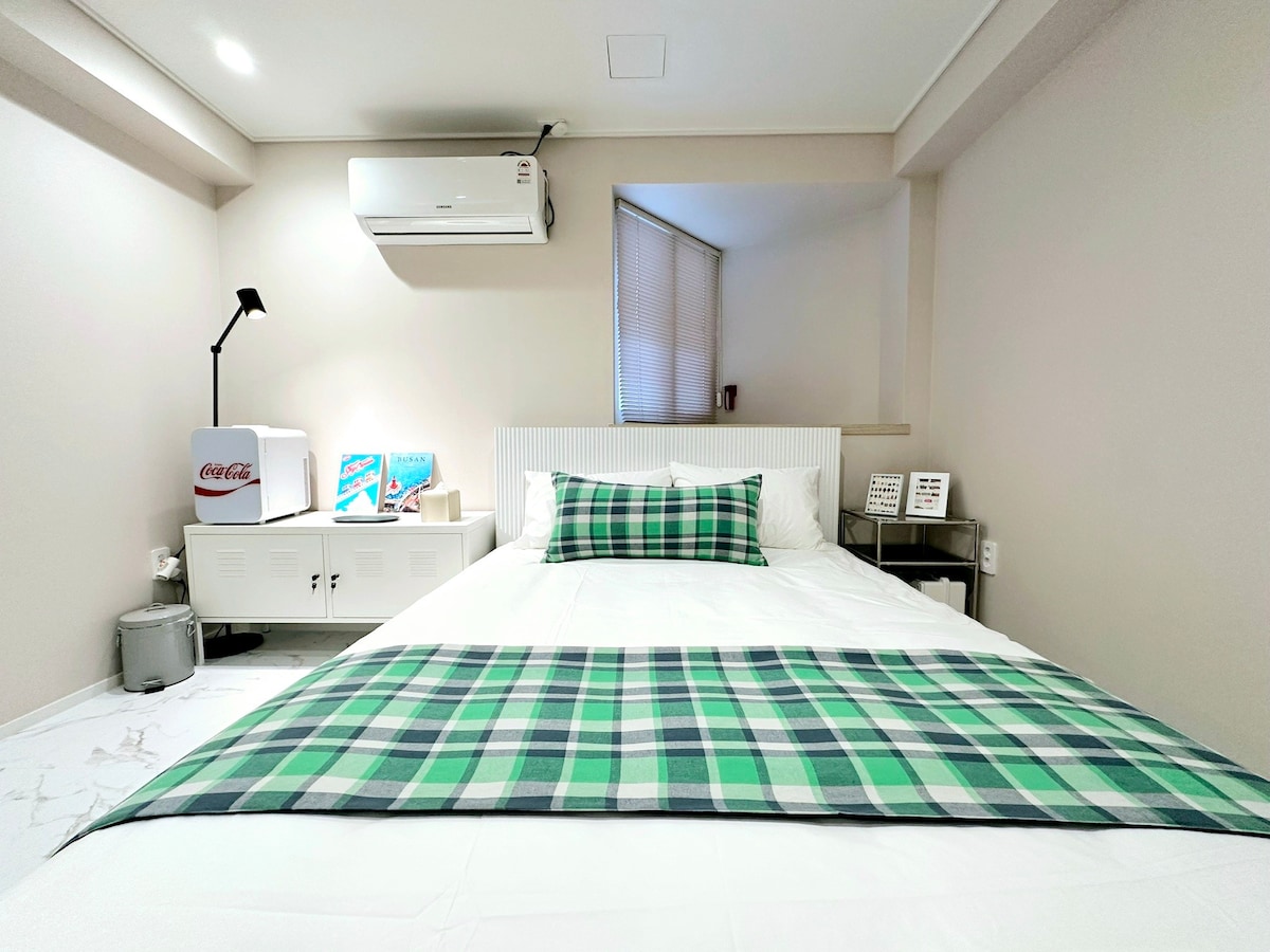 인테리어뿐만 아니라 공간 전체에 개성이 넘치는 이곳, 힙스터라면 놓치지 마세요! 1. 숙박업 등록된 합법숙소 (가구, 소품의 위치나 디자인은 변동될수 있음) 2. Q베드 1개, 욕실1개로된 2인실 (빔프로젝트, 와이파이 제공) 3. 재실 청소는 추가비용 발생 4. 셀프체크인 숙소 (게스트님만 사용가능한 현관 도어락 비밀번호라 안전합니다) 5. 게스트님의 안전을 위해 복도등 공용공간에 보안카메라 작동 6.입실시간전 러기지보관 가능 7. 공용라운지 무료이용(정수기,냉장고,세탁기,캡슐커피머신,전자렌지,제빙기등 무료이용) 8. 광안리 바닷가 10초거리 9. 부산지하철2호선 광안역에서 654m 거리 10. 주변에 다수의 편의점,카페,맛집등 광안리의 인프라를 도보로 이용가능 11. 엘리베이터 없음 12. 주차불가 (맞은편 유료주차장-신호주차타워 이용가능) *** 반려동물 동반입실 불가능한 숙소입니다.