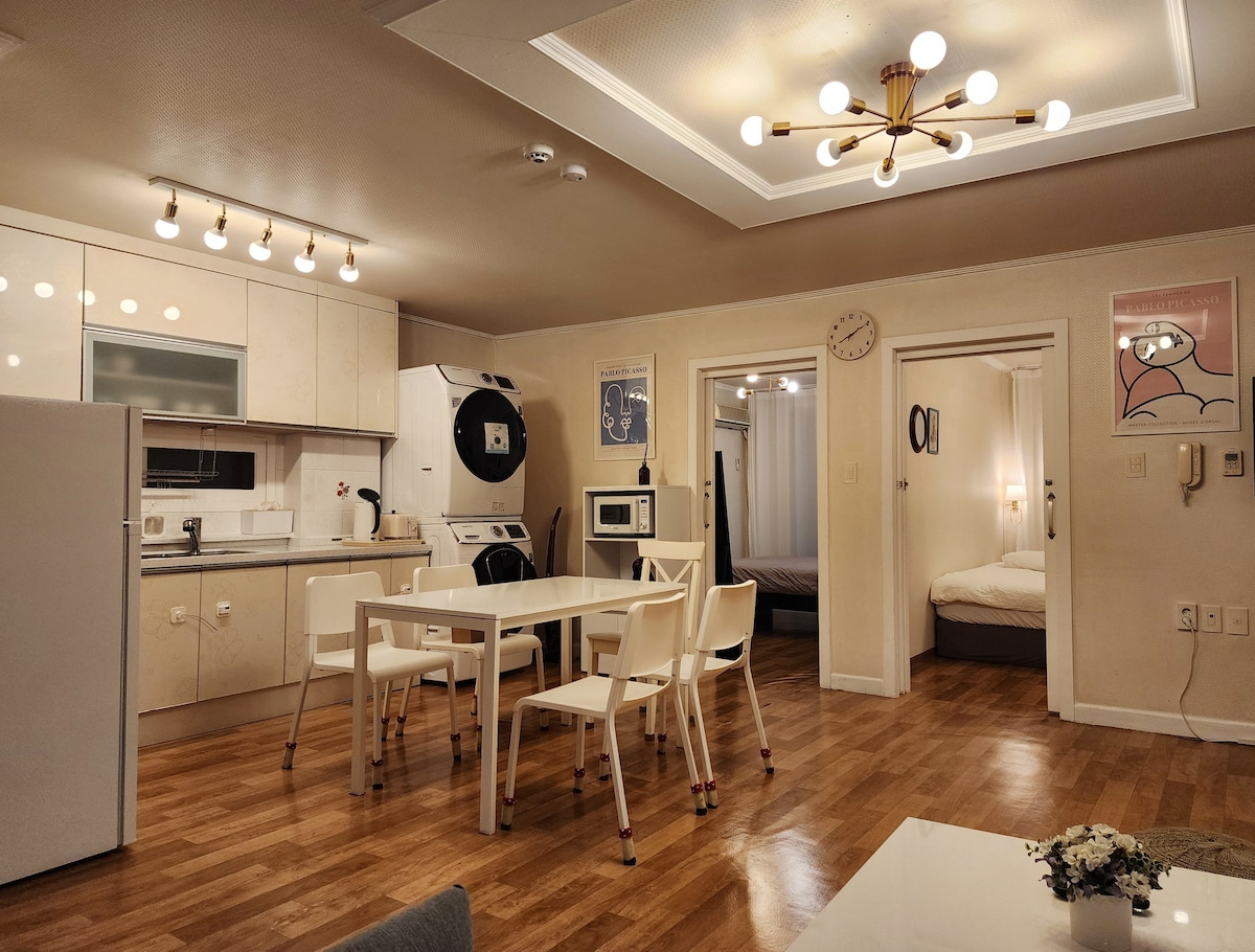 整洁 4人•2间客房/免费停车场/豪华床上用品/金浦机场附近/弘大•明洞•南山•KSPO交通便利