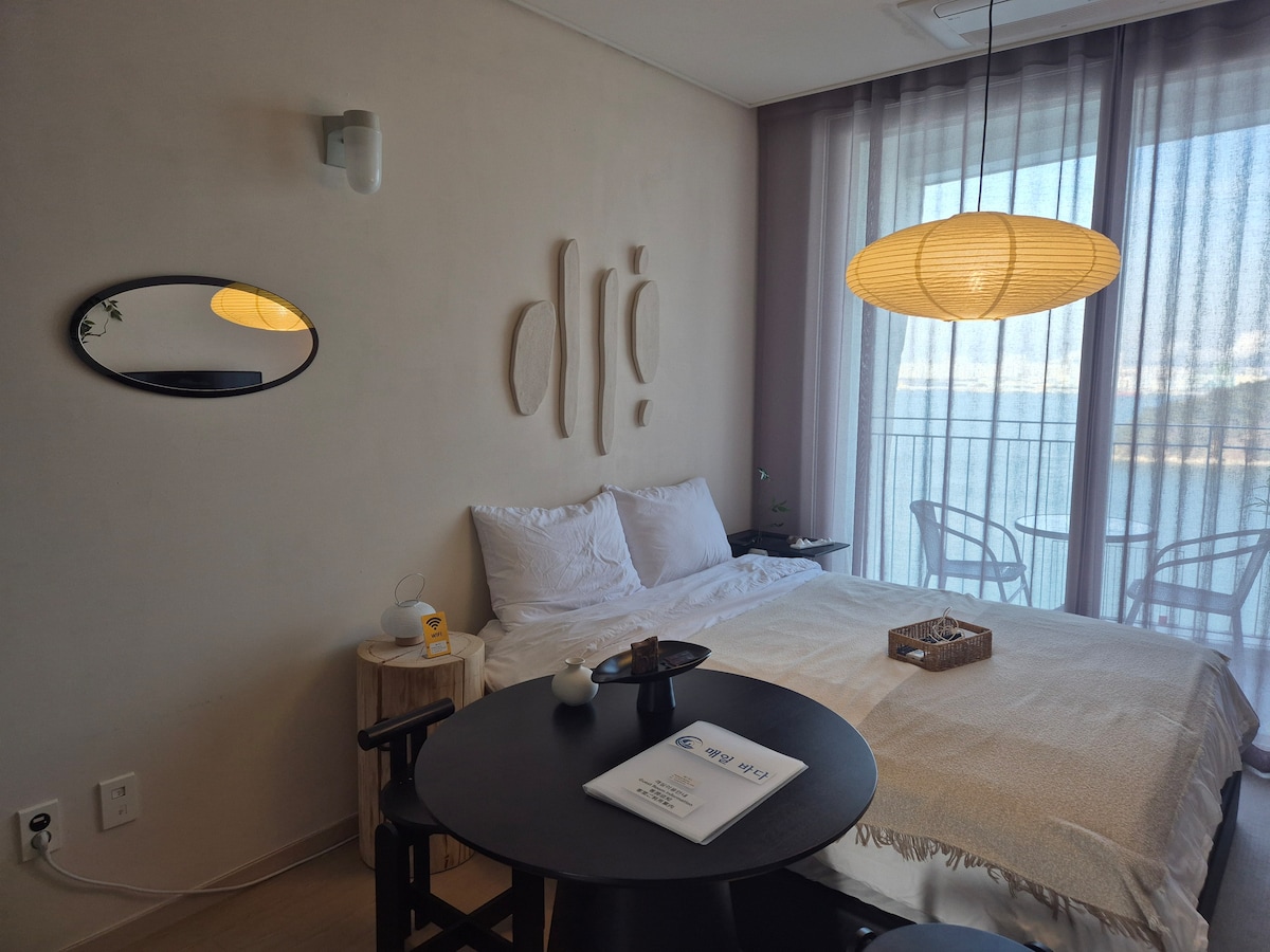 永宗岛全海景房源,客厅和卧室分开,可简单烹饪,步行2分钟到便利店、咖啡馆和餐厅