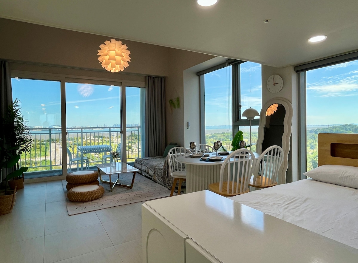 永宗岛全海景房源,客厅和卧室分开,可简单烹饪,步行2分钟到便利店、咖啡馆和餐厅
