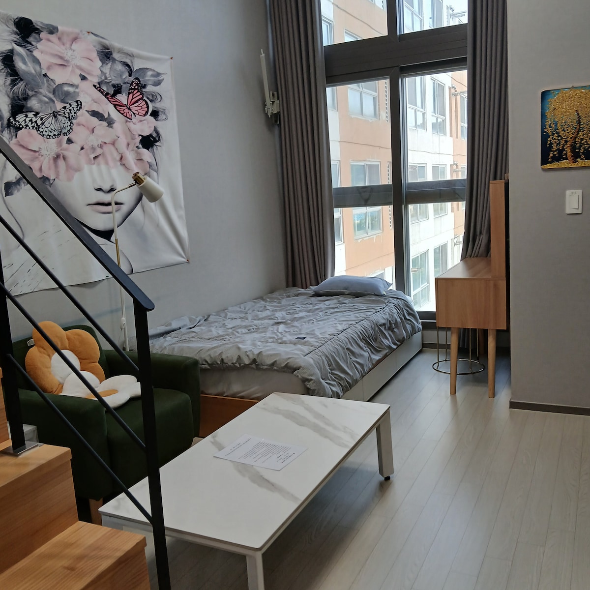 2023년 신축건물로 제일 탑층에 위치한 저희 숙소는 밤에는 멋진 야경과 낮에는 바다뷰와 시티뷰를 동시에 느낄수 있습니다~~ 간단한 식사를 조리할수 있으면 모든 집기류과 침구류는 항상 청결하게 관리하고 있습니다^^ 복층에 침대가 준비되어 있어 누워서도 야경을 볼 수 있고 푹신한 잠자리에서 편안한 휴식을 취할수 있습니다~~