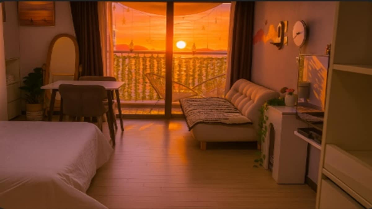 (特价)#露台海景/码头/Yeocheon站10分钟/步行1分钟到达商场/3人间(2张床)/现代简约/免费停车