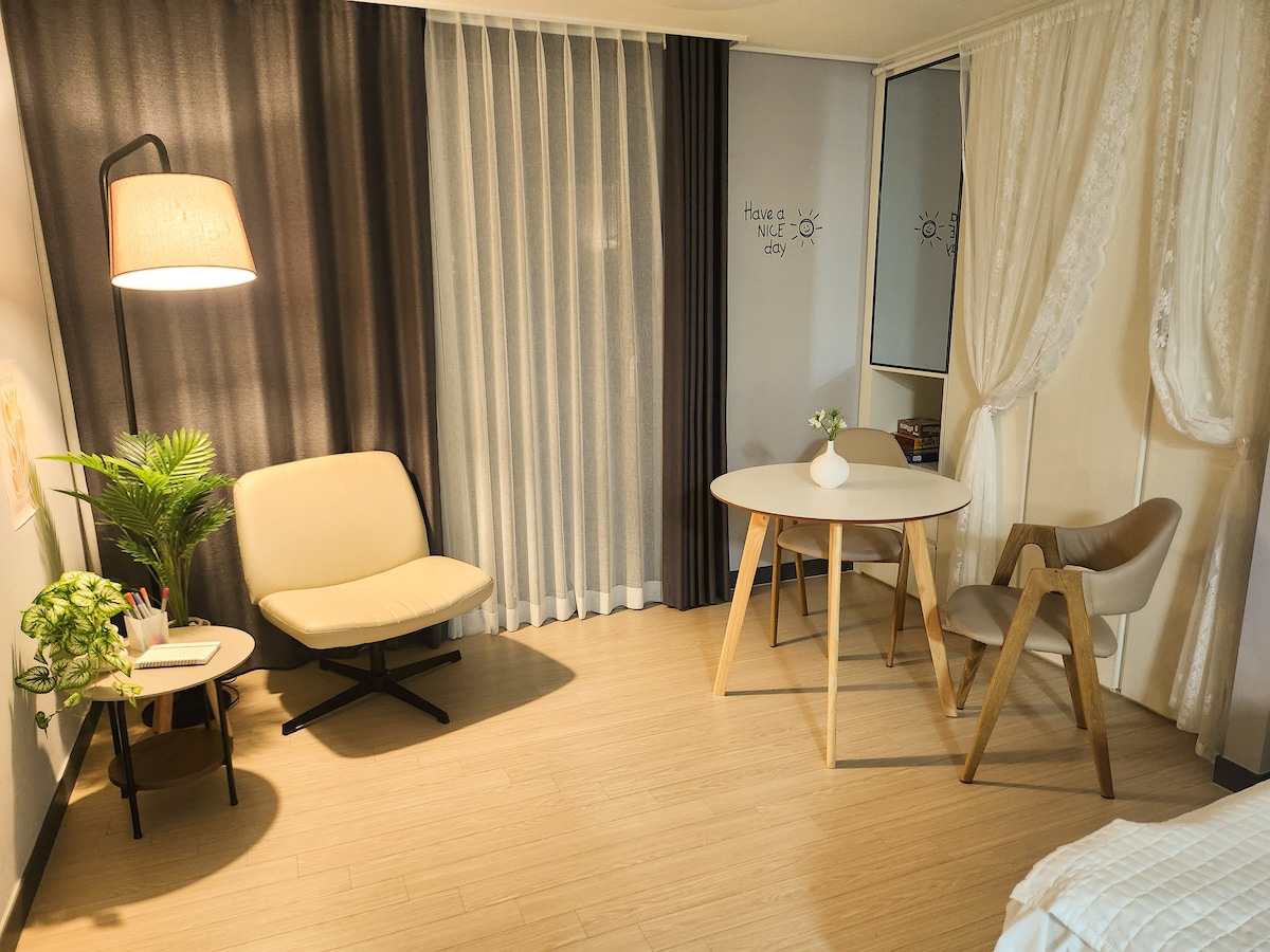 平均评分 5 分(满分 5 分),共 48 条评价【民民之家】#新建#여수#双人房#免费停车#自助入住#Netflix#感性#干净#旅游景点10分钟