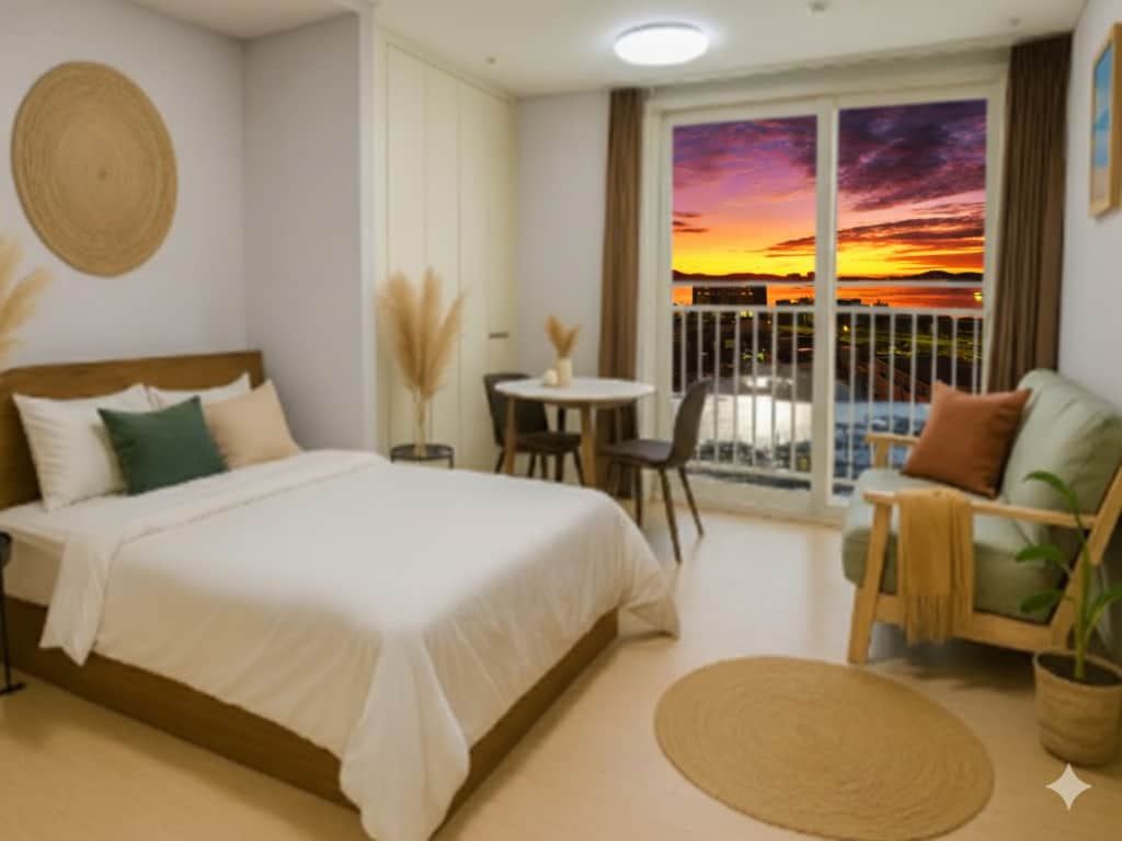 This is a spacious accommodation suitable for a couple or a family (4 people). It is a neat accommodation near Gukdong Port with a view of the Yeosu Gyeongdo sea. It is a newly built residence that feels like a calm home, managed directly by the host family. ㅡFree parking ㅡ5-15 minutes away from major tourist attractions ㅡ15 minutes from Woongcheon Marina / Beach Park / Yeosu Expo KTX Station. ㅡConvenience store , coffee shop , chicken restaurant in the building ㅡ5 minutes walk to Lotte Mart