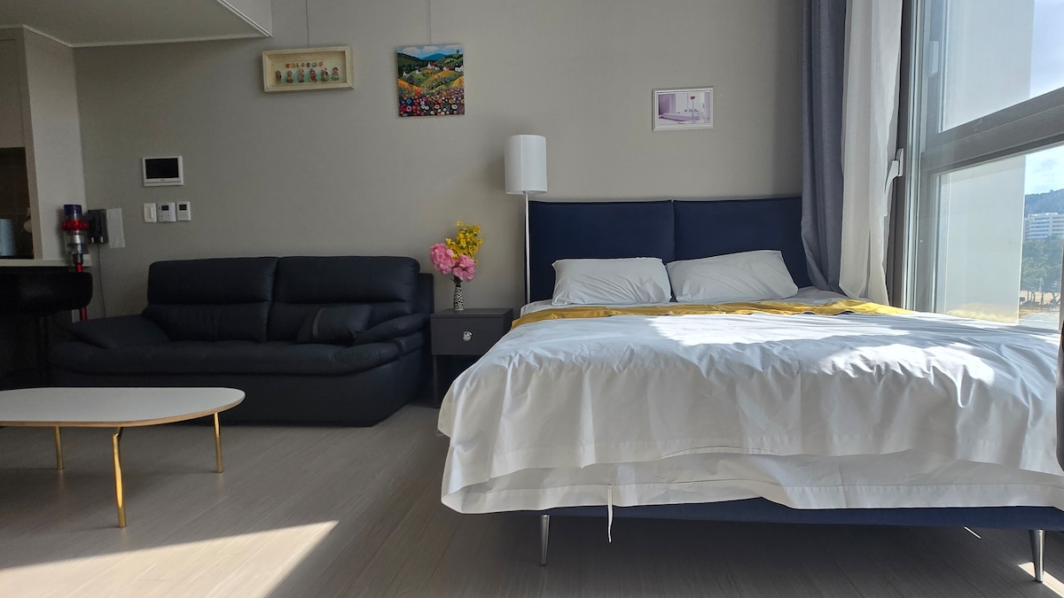 외부계단을 이용하는 2층입니다.단독 테라스를 가진 독채형의 원룸으로 바다가 한 눈에 들어오는 멋진 곳입니다.단독 바베큐가 가능하며 밤바다의 야경을 즐길 수 있습니다. 바다건너 금산이 보이며 바랫길2코스 중간에 위치해 있습니다. 바로 바닷가에서 여름에는 해수욕과 아이들과 바지락 조개체험,게잡이도 가능합니다.