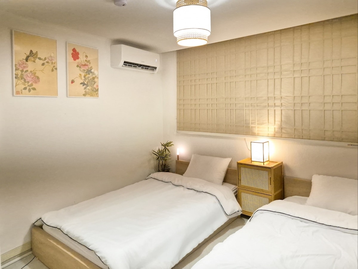 홍대역 1분/ 집전체사용 /모든방에어컨 / 2룸 2침대(퀸)/ 짐보관 / 1층