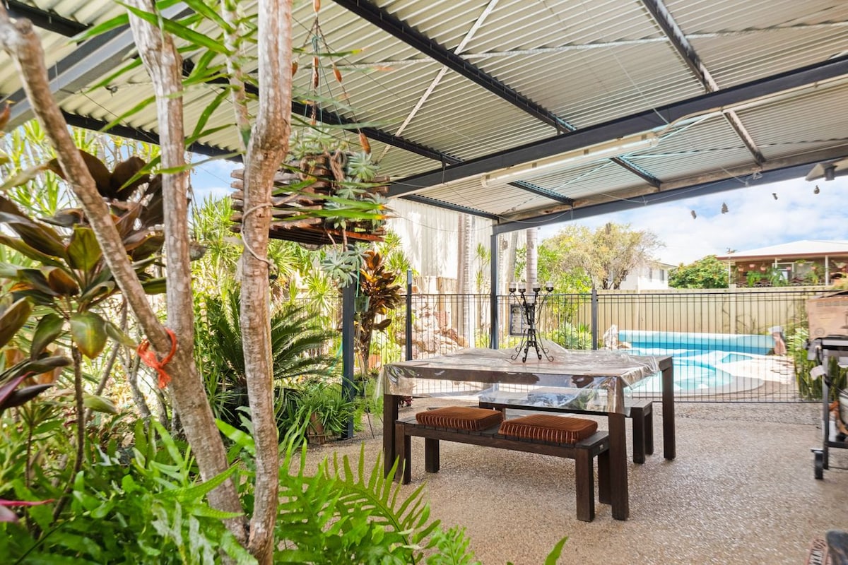 Modern airconditioned studio apartment with Queen bed and extra double mattress sofa bed made up on request. Short walk to beautiful local beaches, free lagoon pool and great restaurants 15 mins walk away and cute coffee shop + fish’nchips in Cooee bay. Off street undercover parking, Smart TV, WIFI, private bathroom and self contained kitchenette with new appliances. Access to laundry and back garden with BBQ . Pet and child friendly. Large elevated front deck.